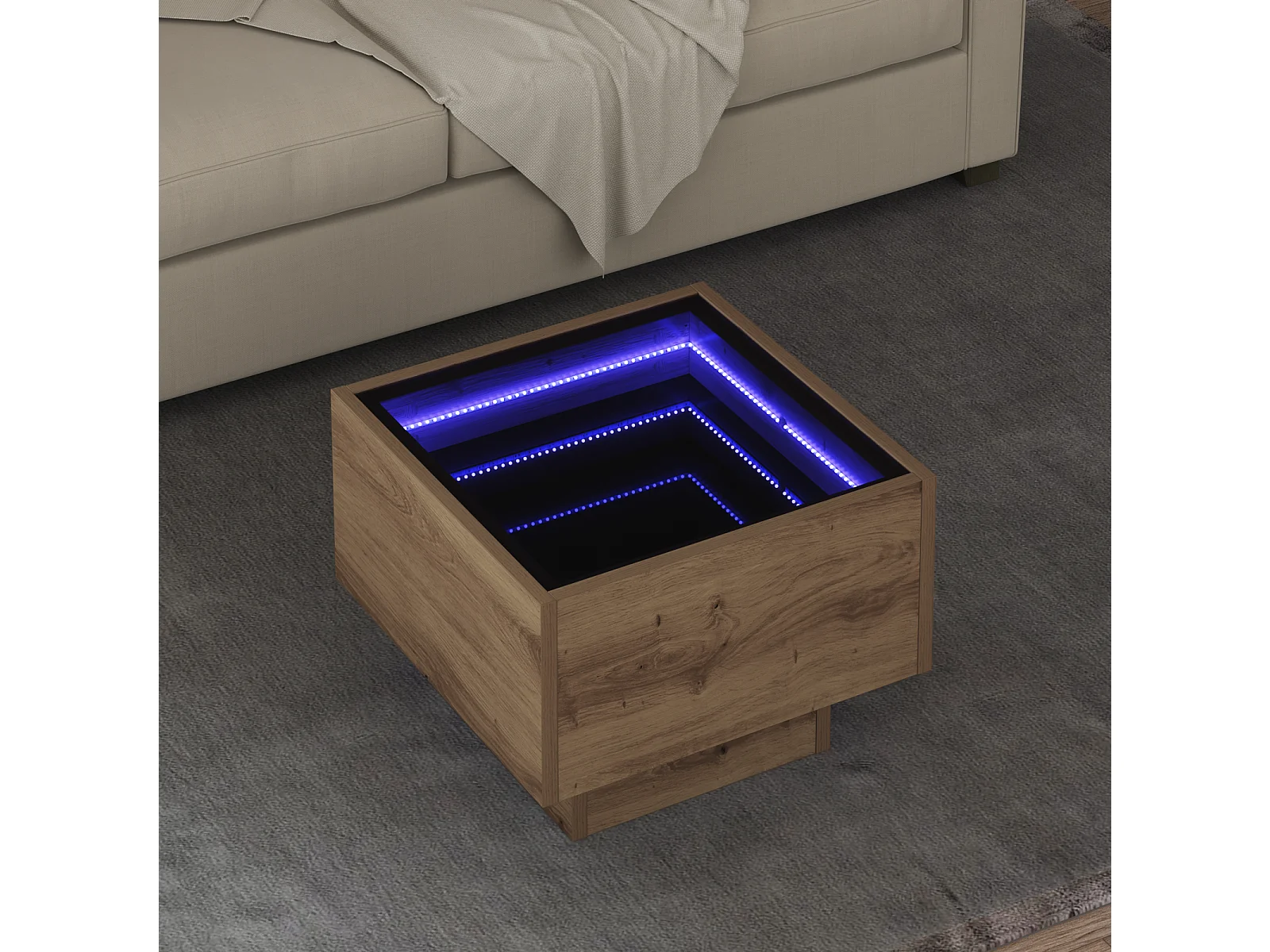 Table d'appoint et LED chêne fumé 40x40x30 cm bois d'ingénierie