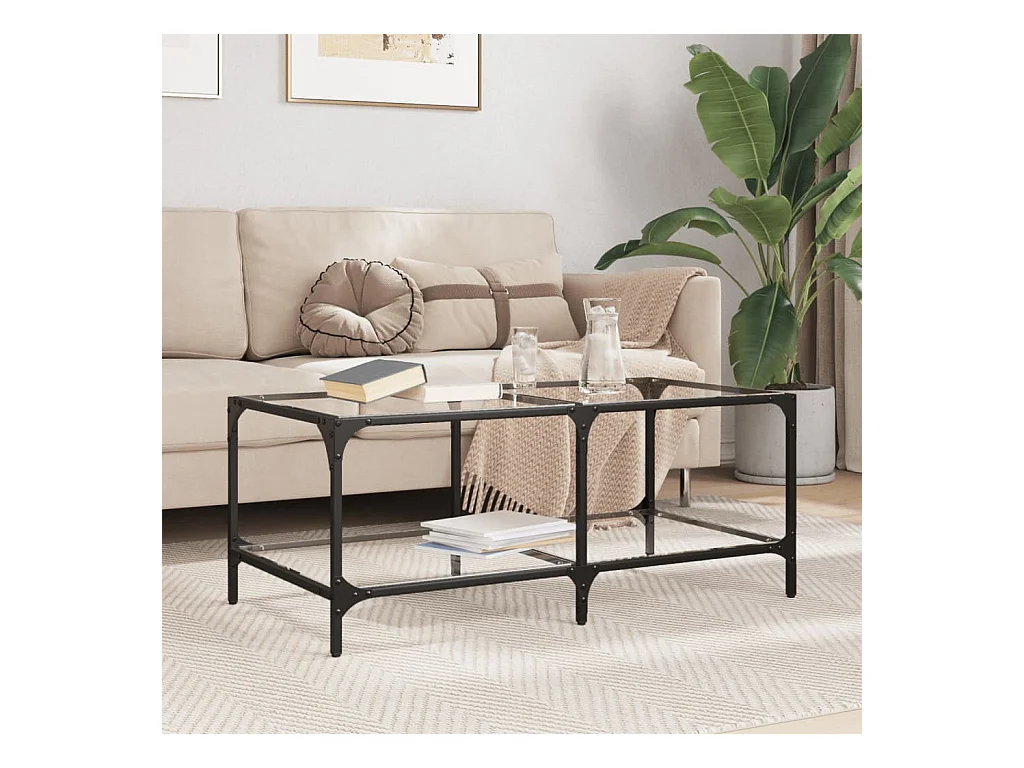 Table basse avec dessus en verre transparent 98,5x50x40cm acier
