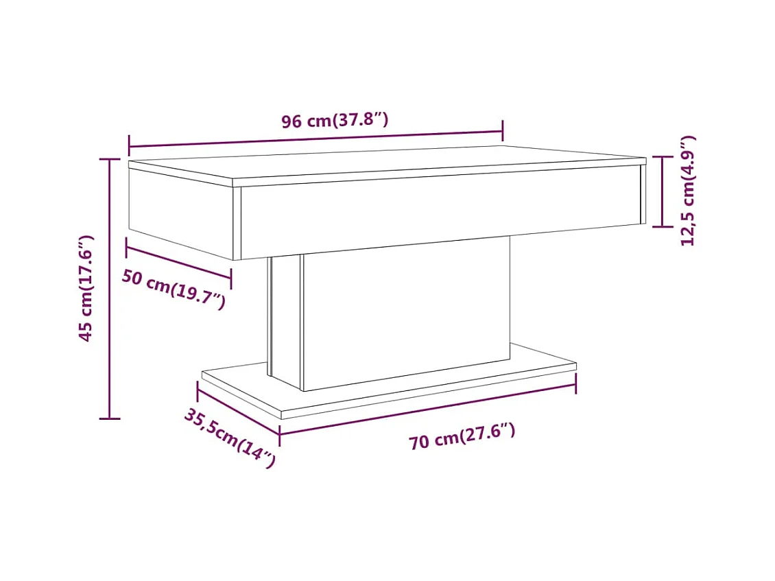 Table basse Sonoma gris 96x50x45 cm Bois d'ingénierie