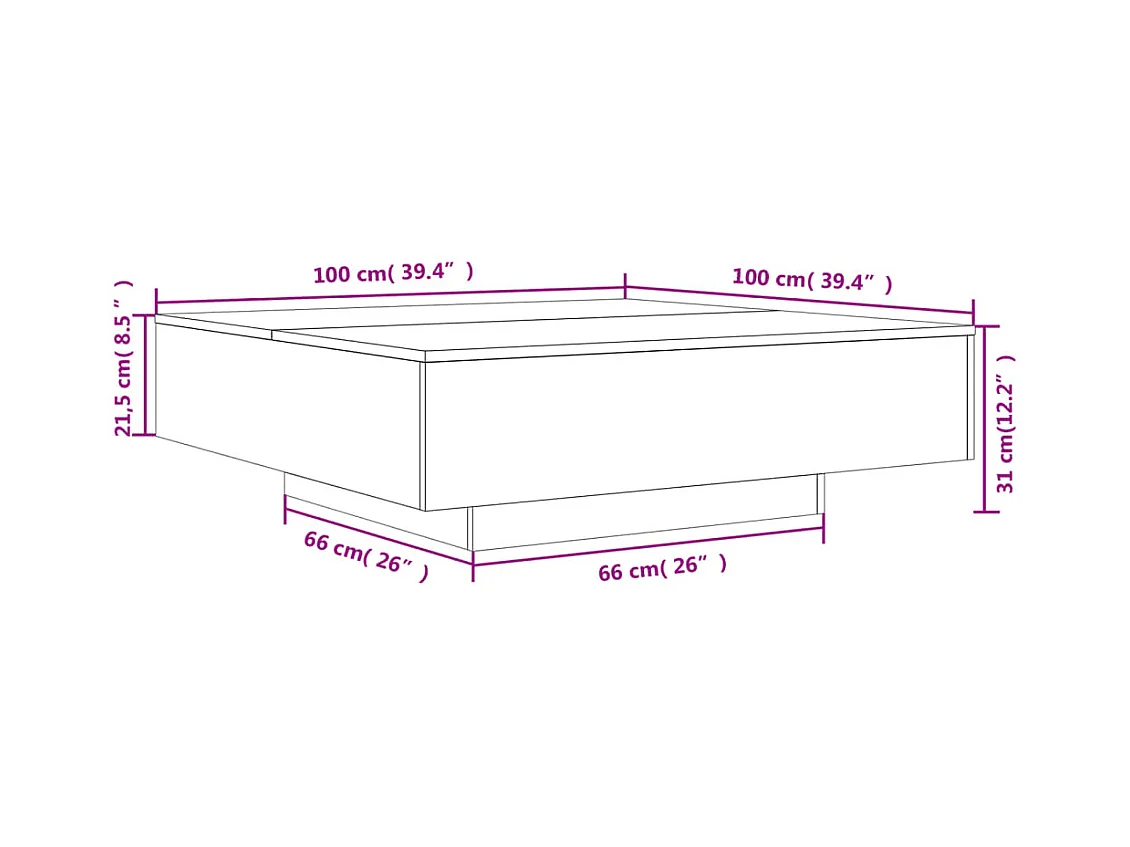 Table basse avec lumières LED sonoma gris 100x100x31 cm