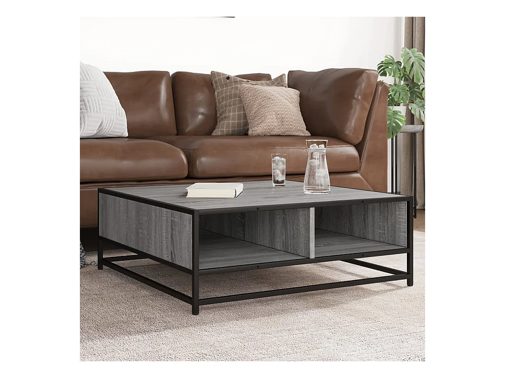 Table basse sonoma gris 80x80x45 cm bois d'ingénierie et fer