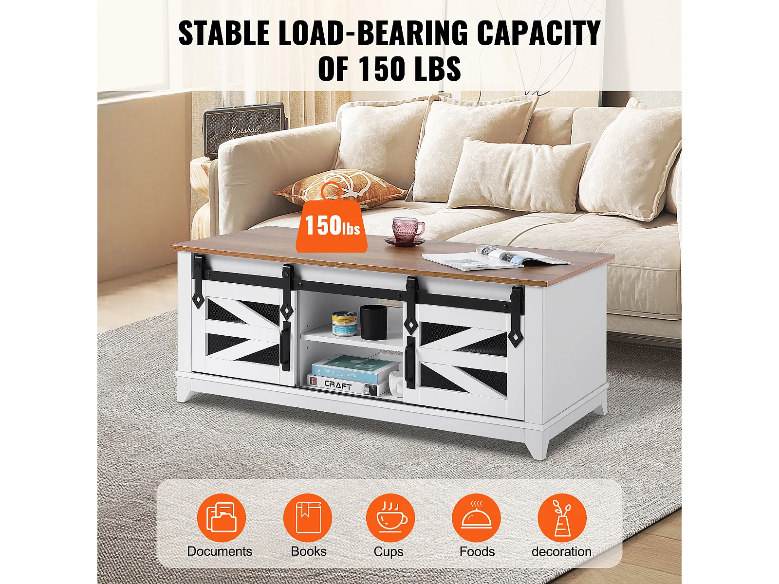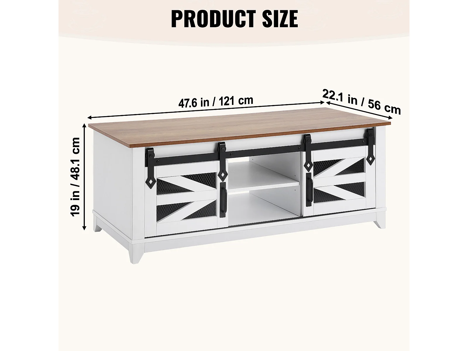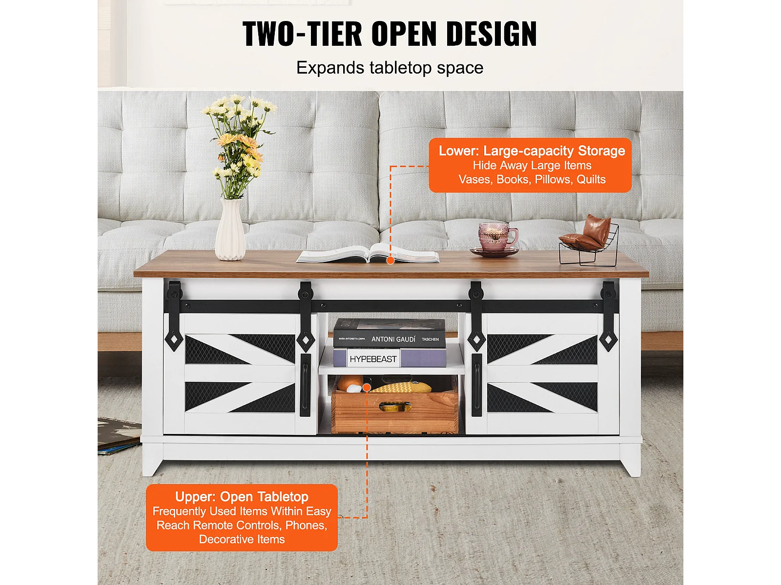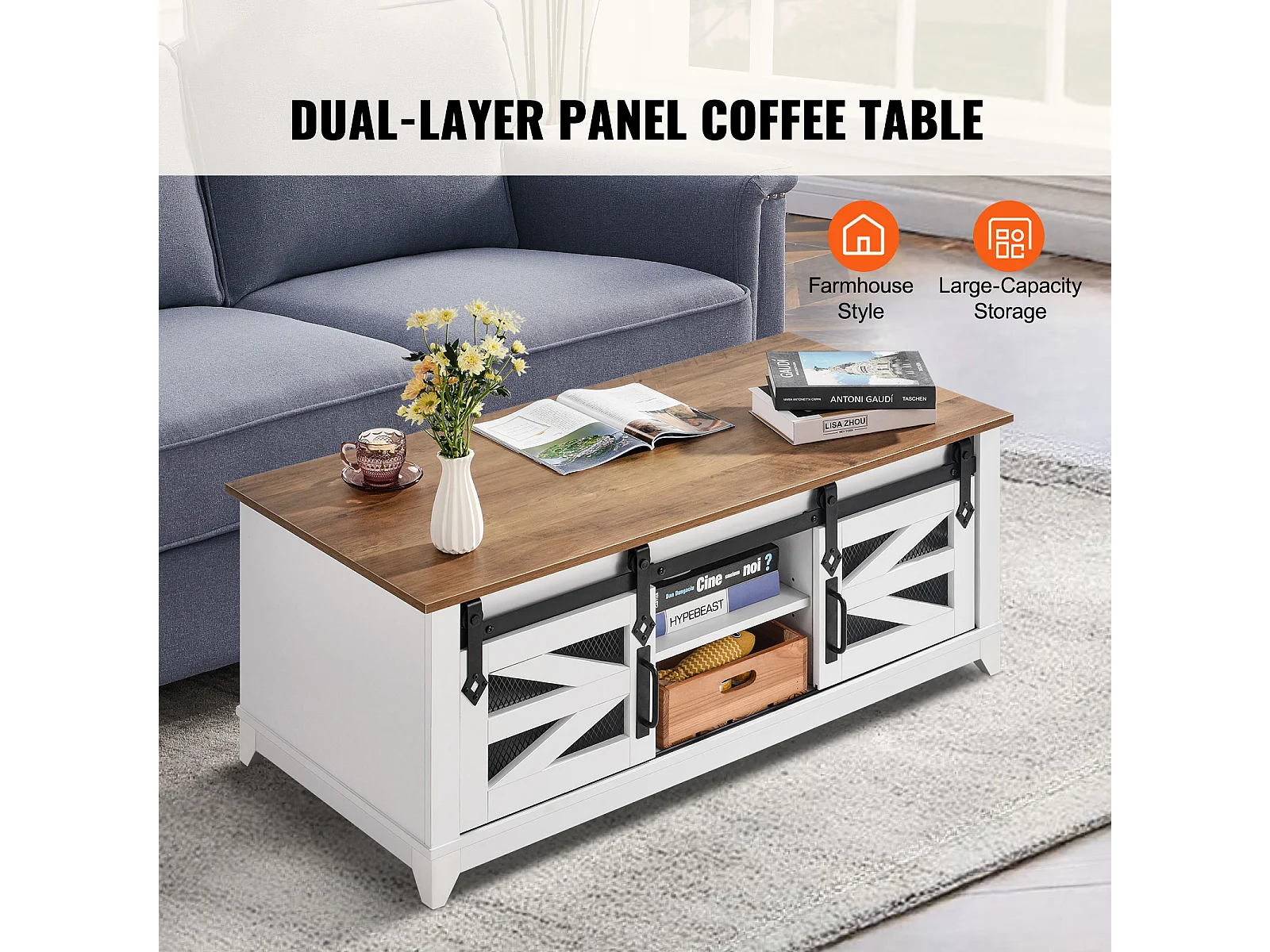 Table Basse SucceBuy, 1210 mm, Rectangulaire à 2 Niveaux avec Portes de Grange Coulissantes, pour Salon, Chambre, Appartement, Studio