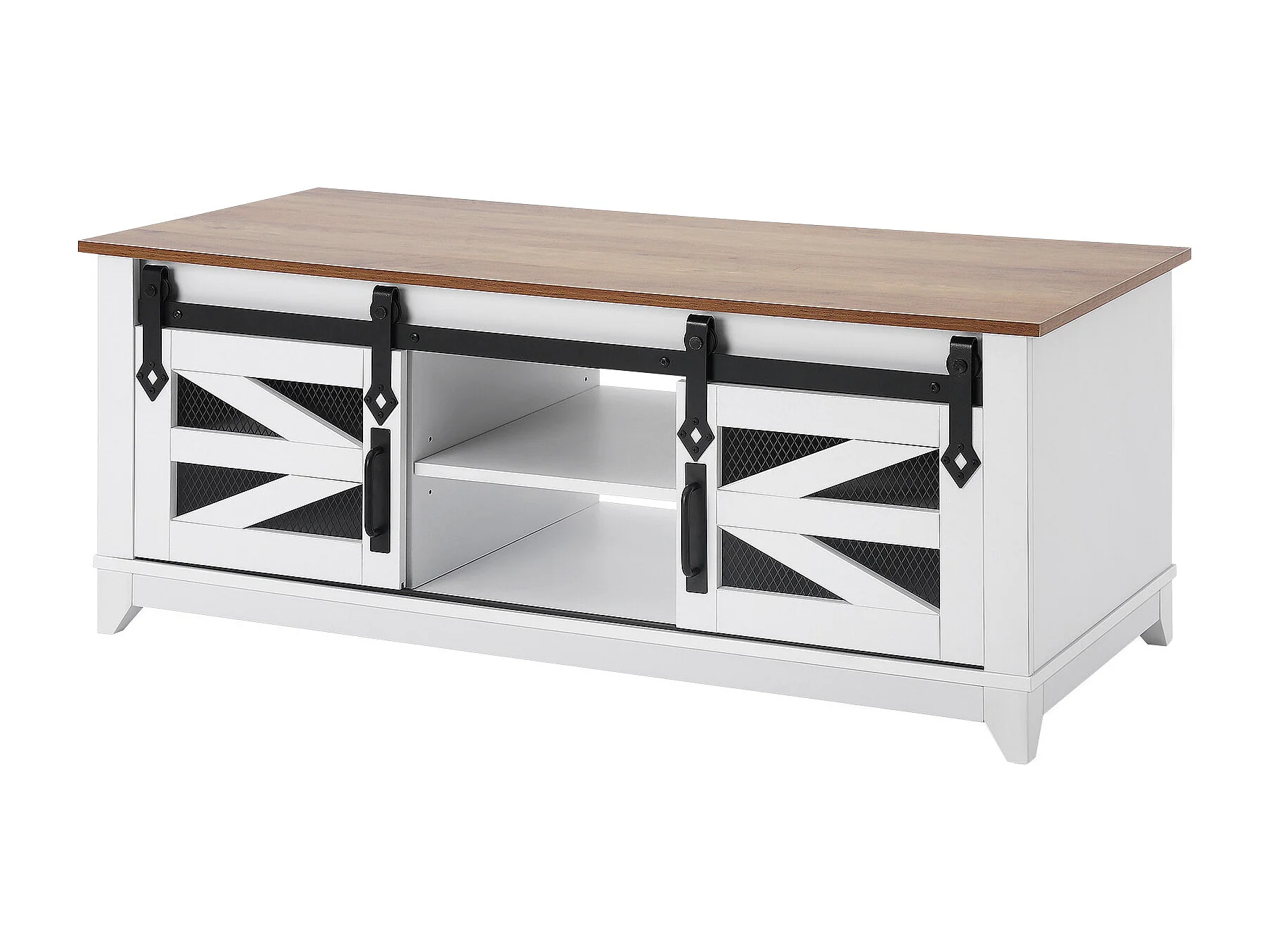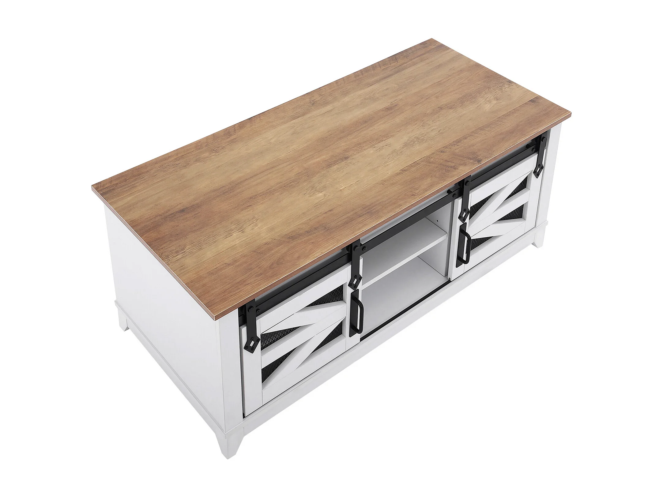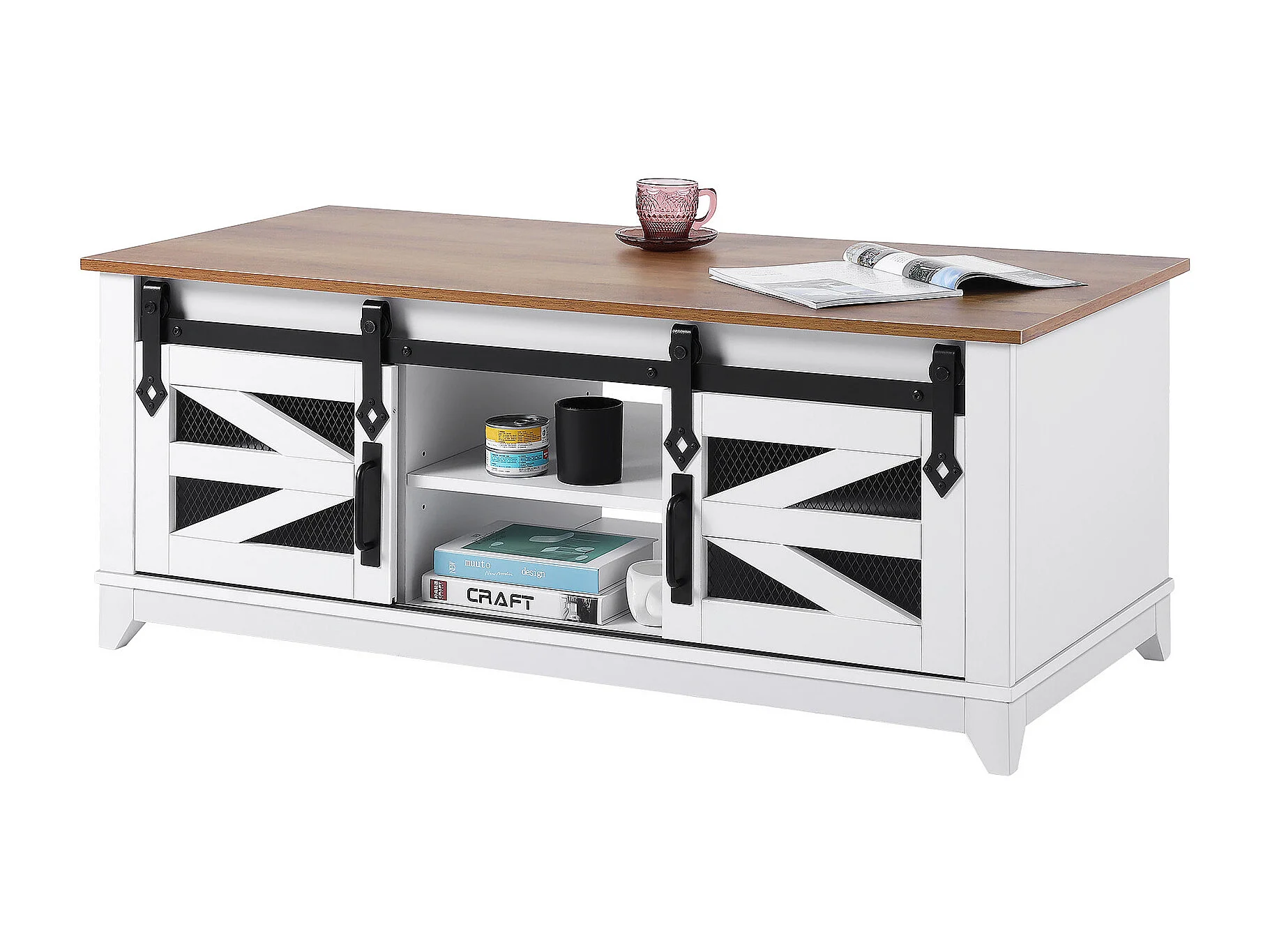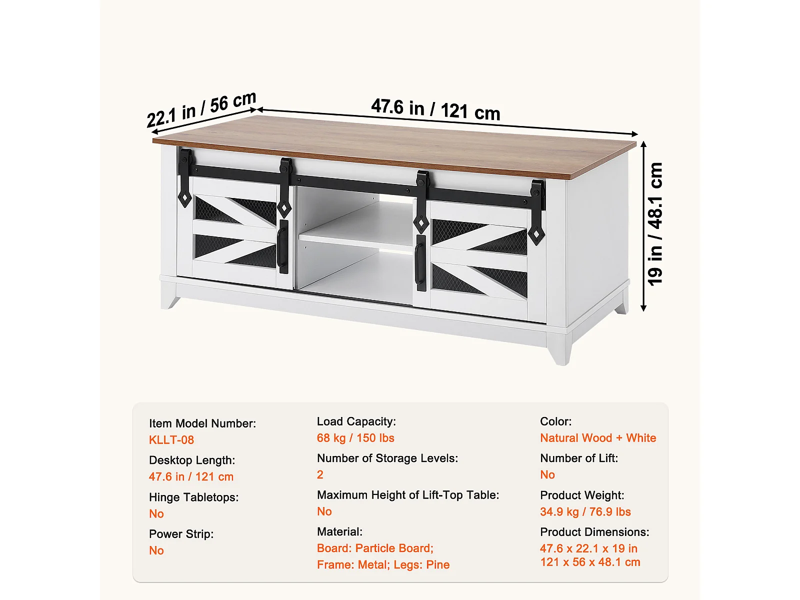 Table Basse SucceBuy, 1210 mm, Rectangulaire à 2 Niveaux avec Portes de Grange Coulissantes, pour Salon, Chambre, Appartement, Studio
