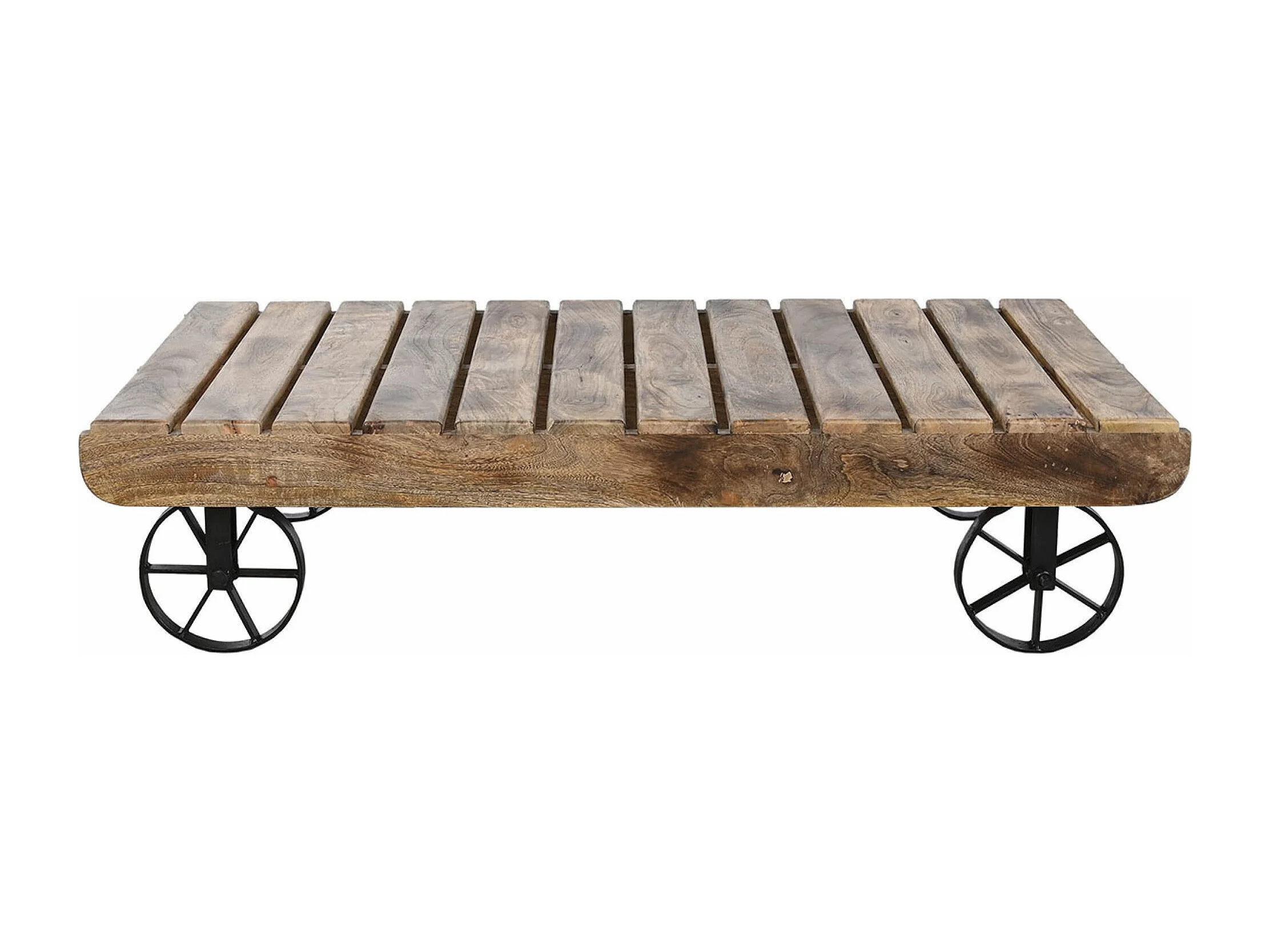 Table basse, table de salon en bois coloris naturel et métal noir -longueur 130 x profondeur 80 x Hauteur 32 cm