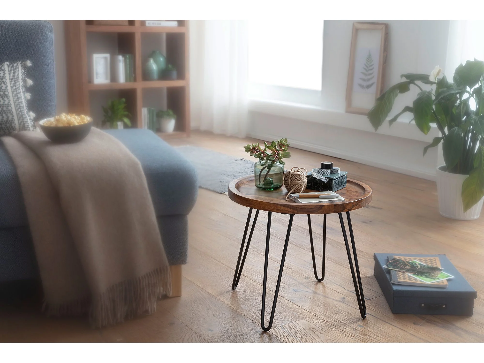 table basse table de salon en bois massif 45x40x45 cm ronde | Table basse avec pieds en épingle à cheveux Table basse en bois et métal