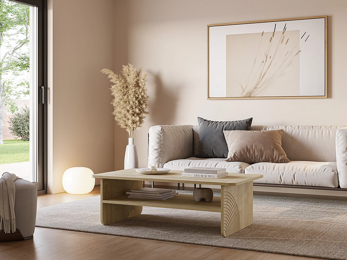 Meuble Salon-Séjour. Table basse en mélaminé bois clair. L-H-P : 110 - 47 - 65cm