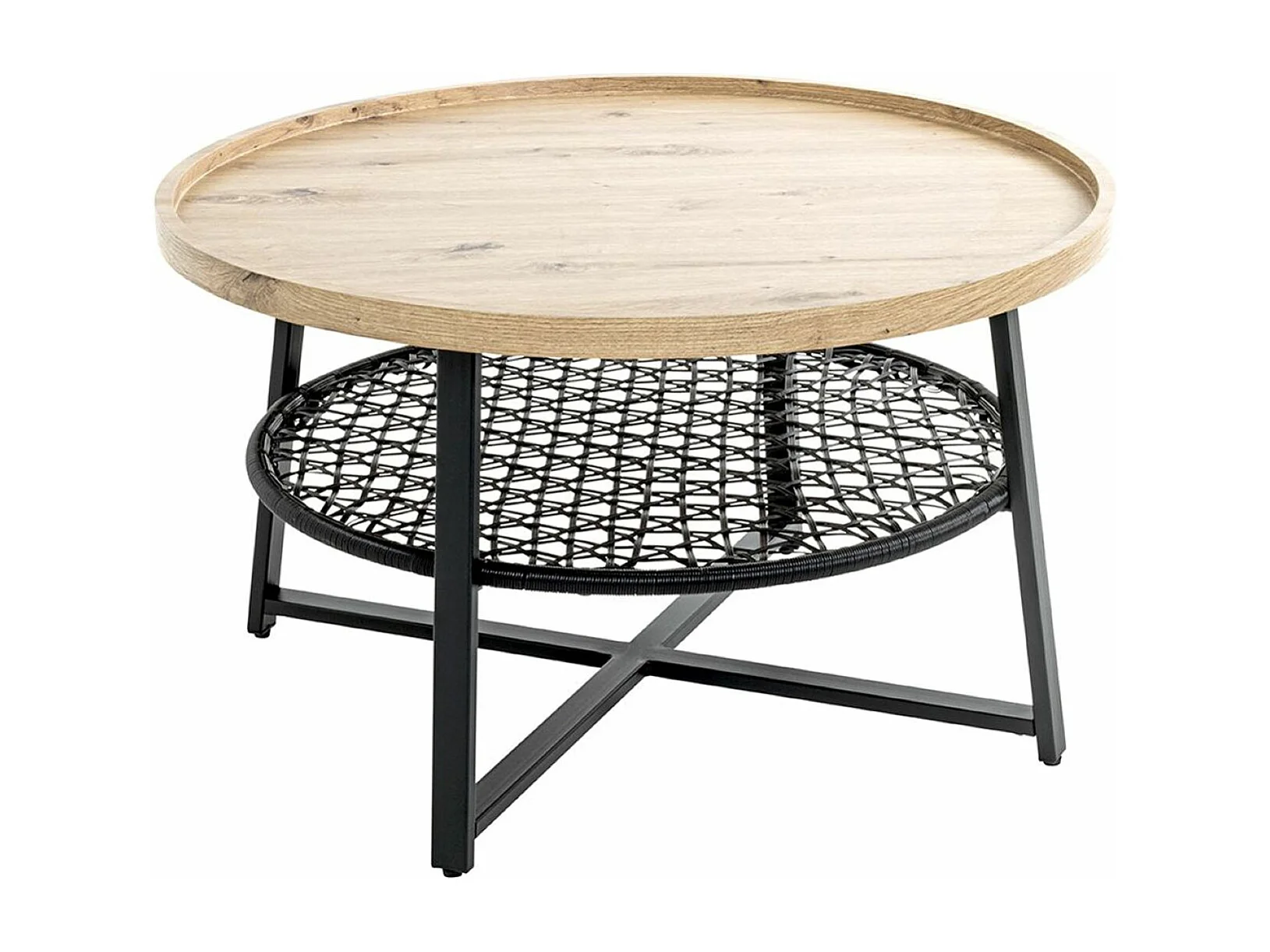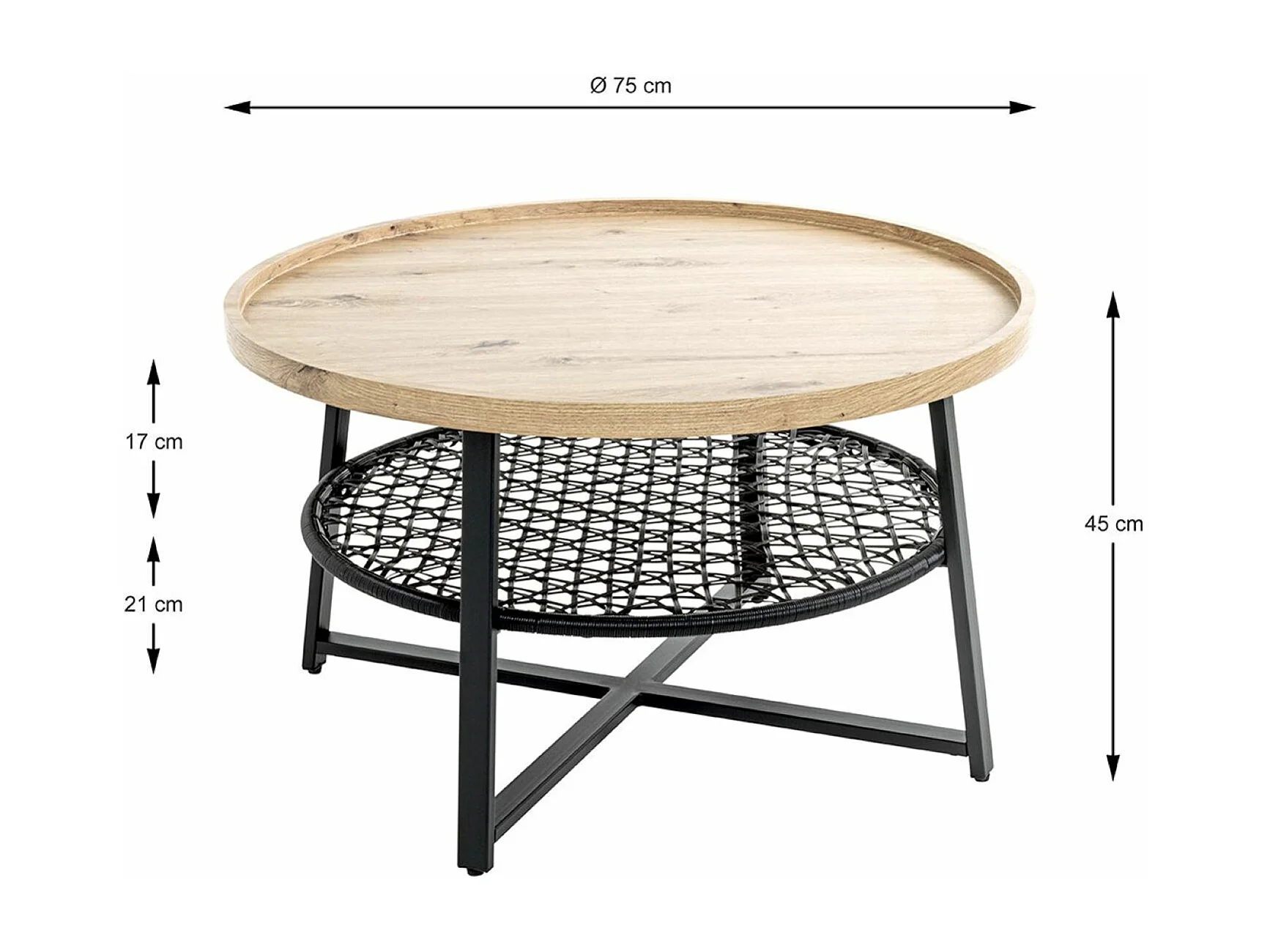 Table basse, Table de salon ronde en bois chêne et métal noir - diamètre 75 x hauteur 45 cm