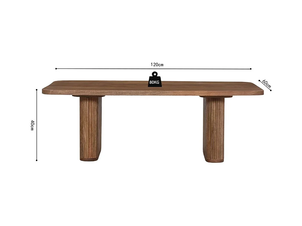 Table basse TALVORA – Bois de manguier massif – Table basse rectangulaire 120x60 cm – Design brut et naturel