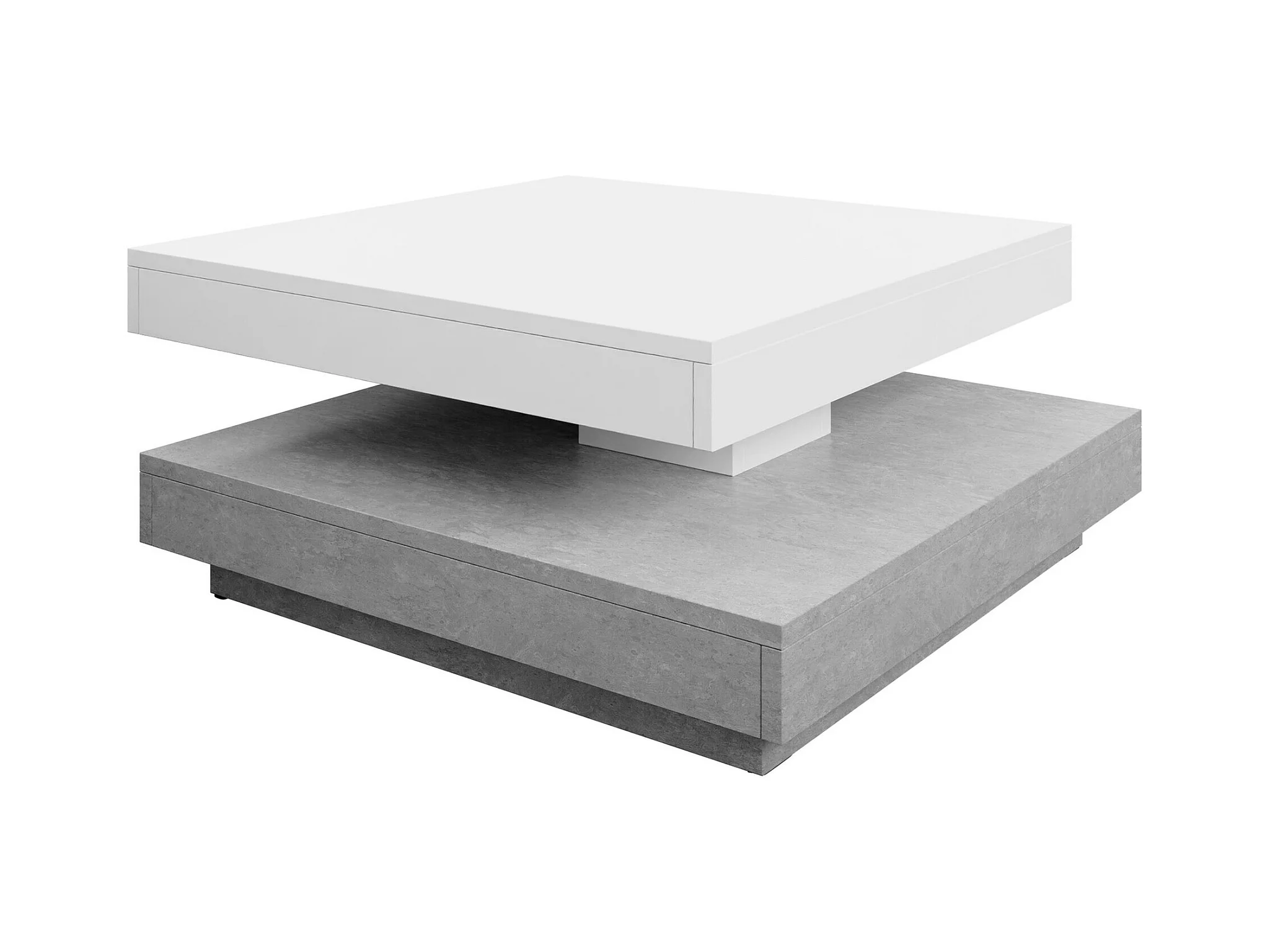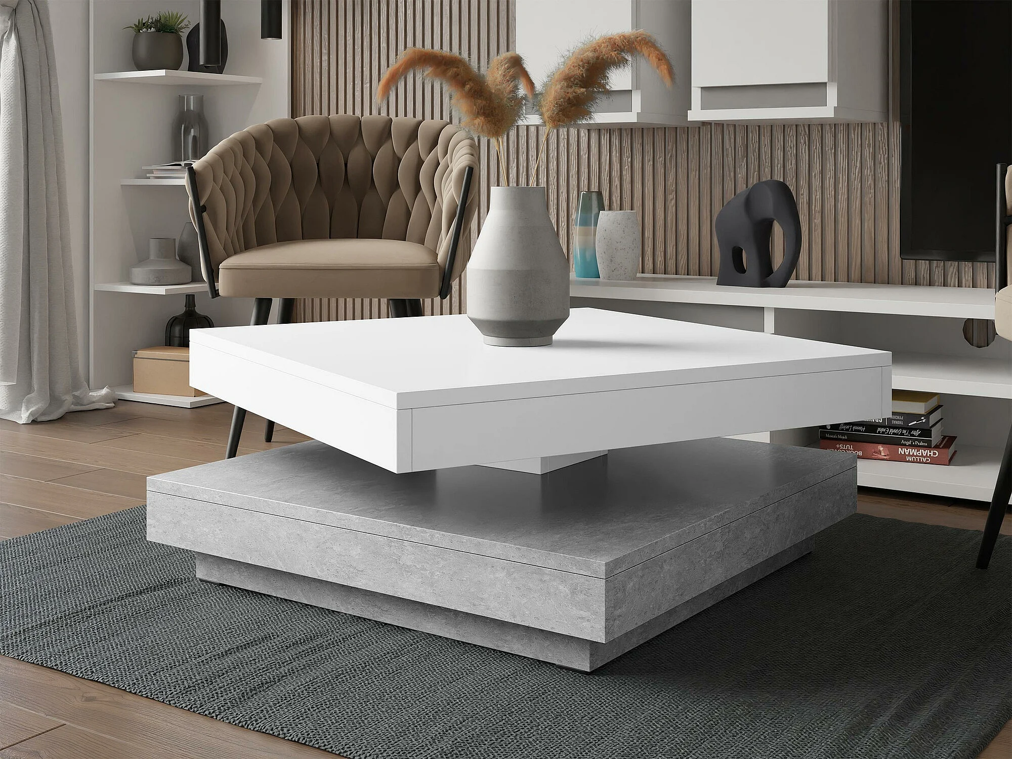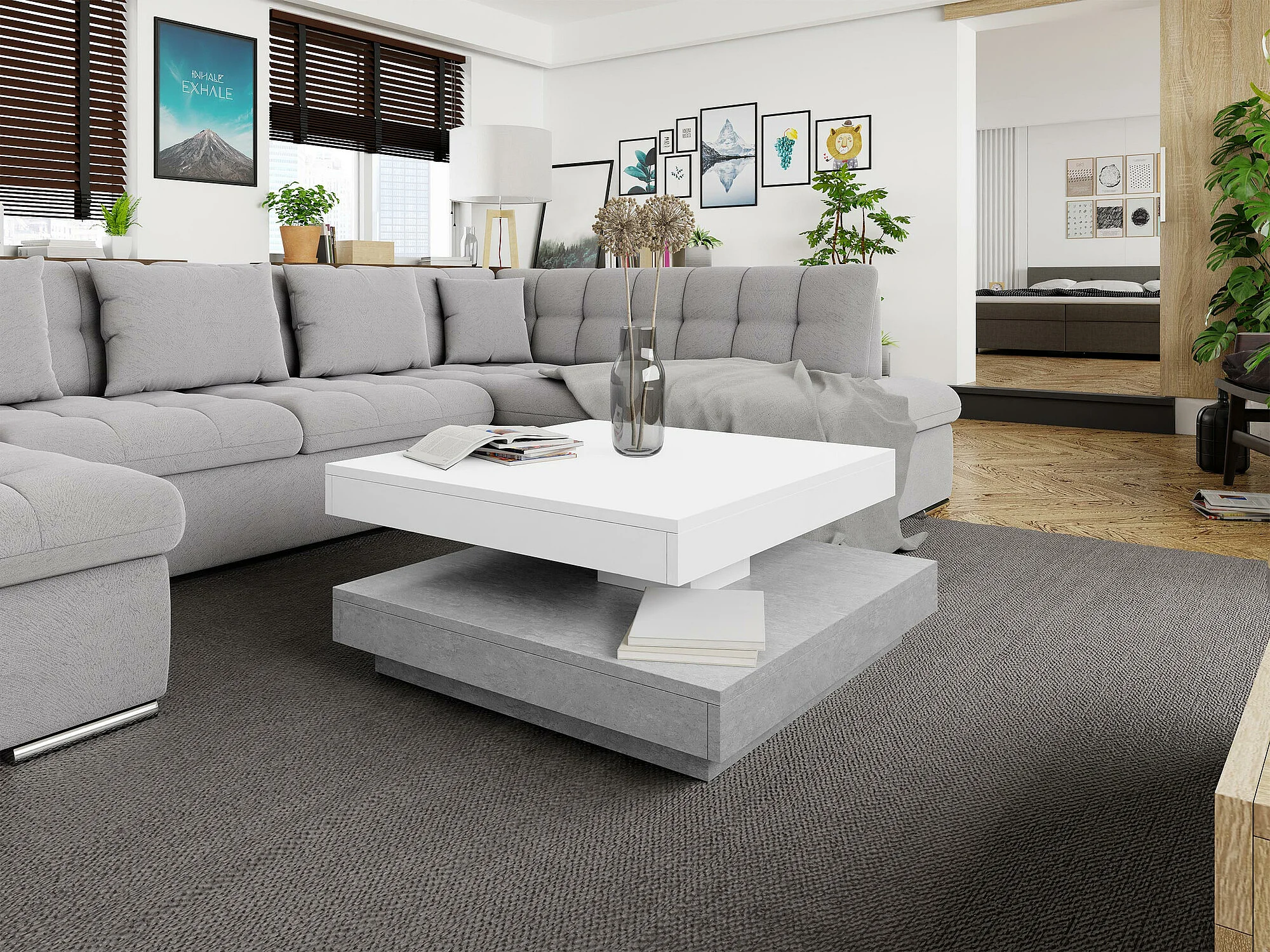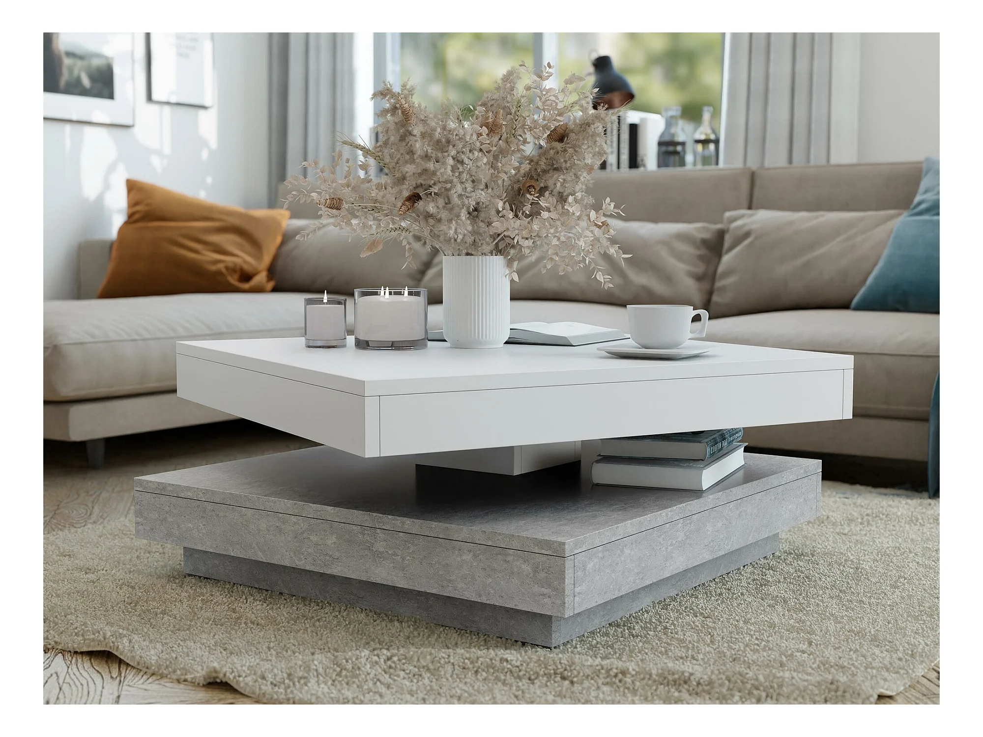 Table basse transformateur Comfivo 385, Béton|Blanc, 34x70x70cm, Stratifié, Angulaire