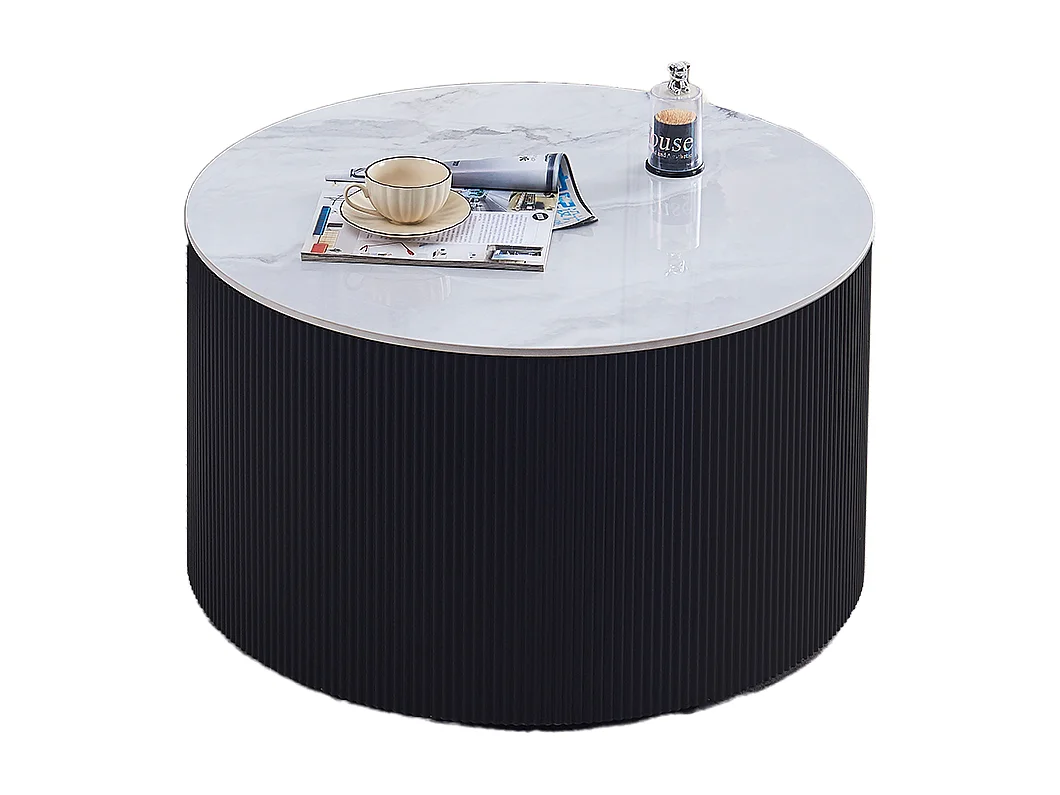 Table Basse VALMY – Pieds Noirs & Céramique Marbre – 90x45 cm