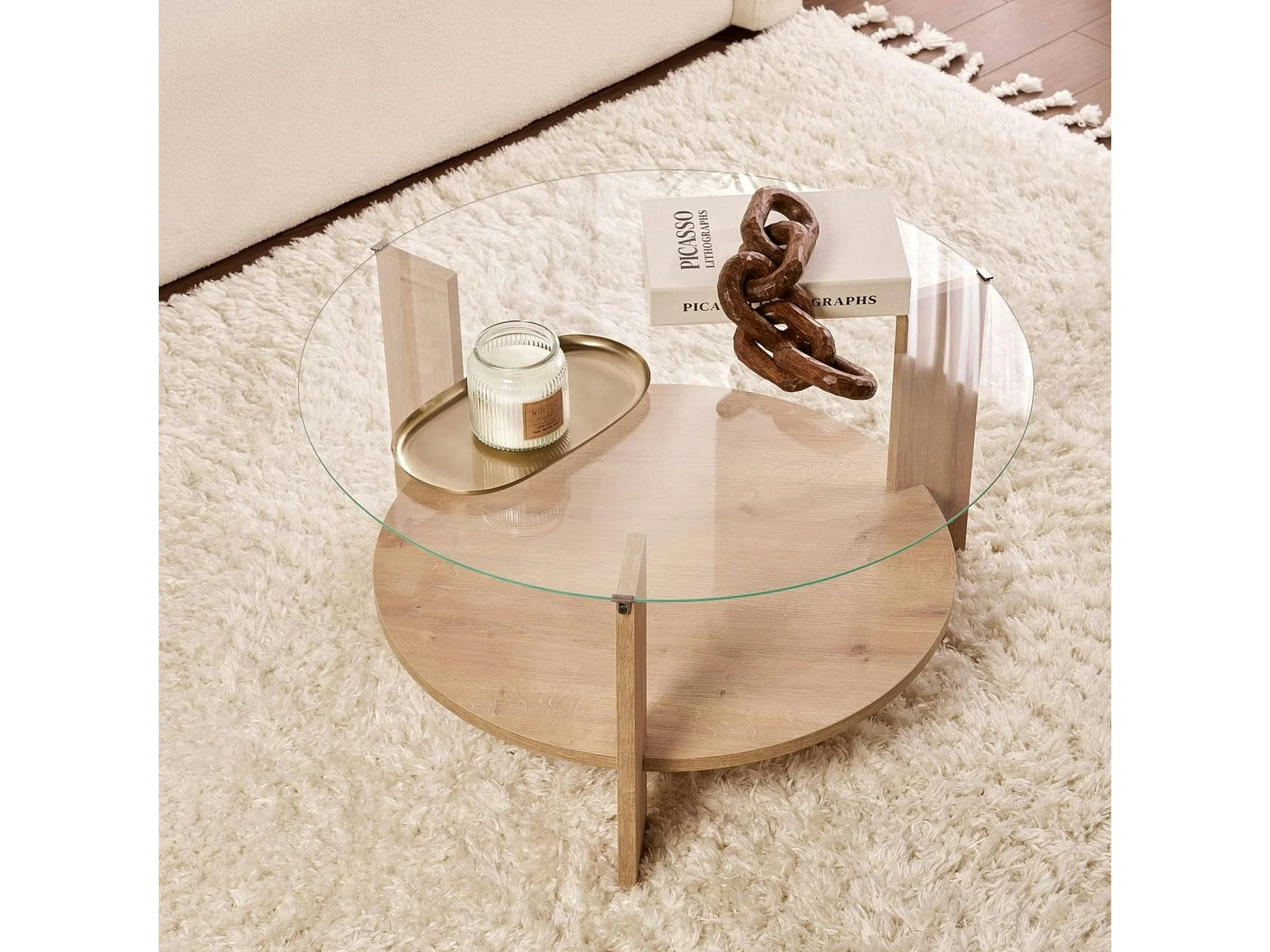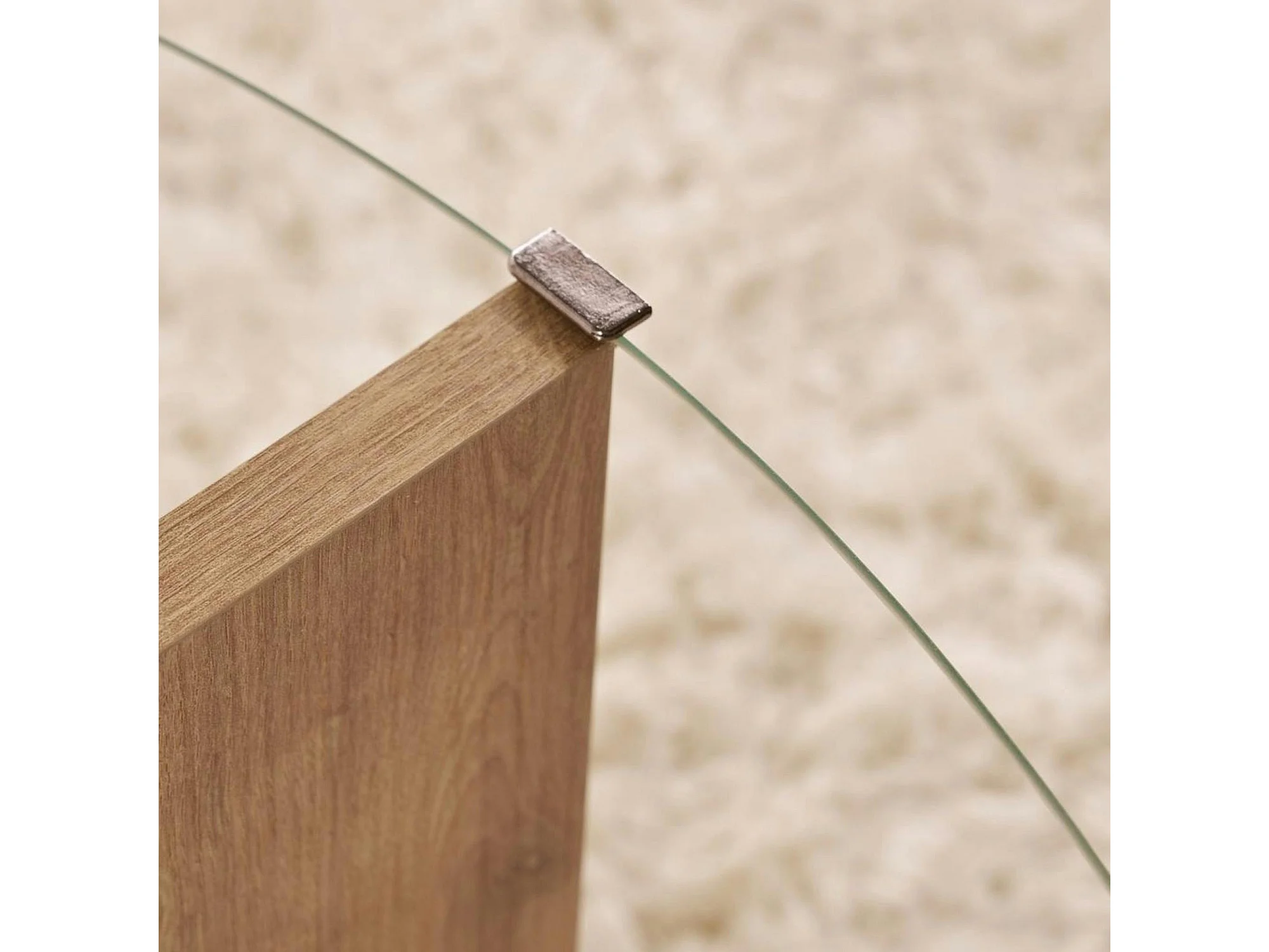 Table basse en verre - pied en croix effet chêne clair SALTA
