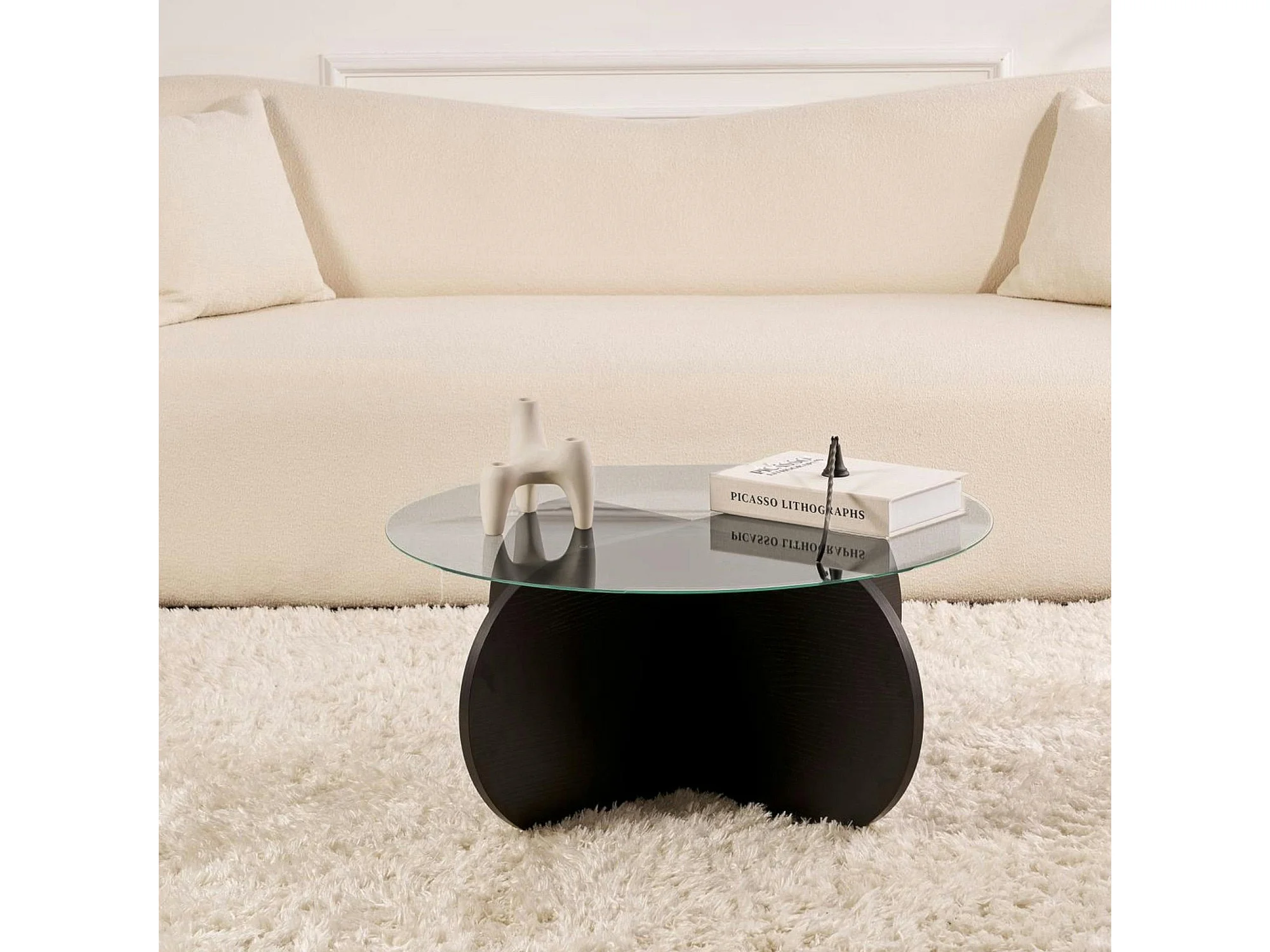 Table basse ronde verre ⌀60 cm - structure métal noir TULUM