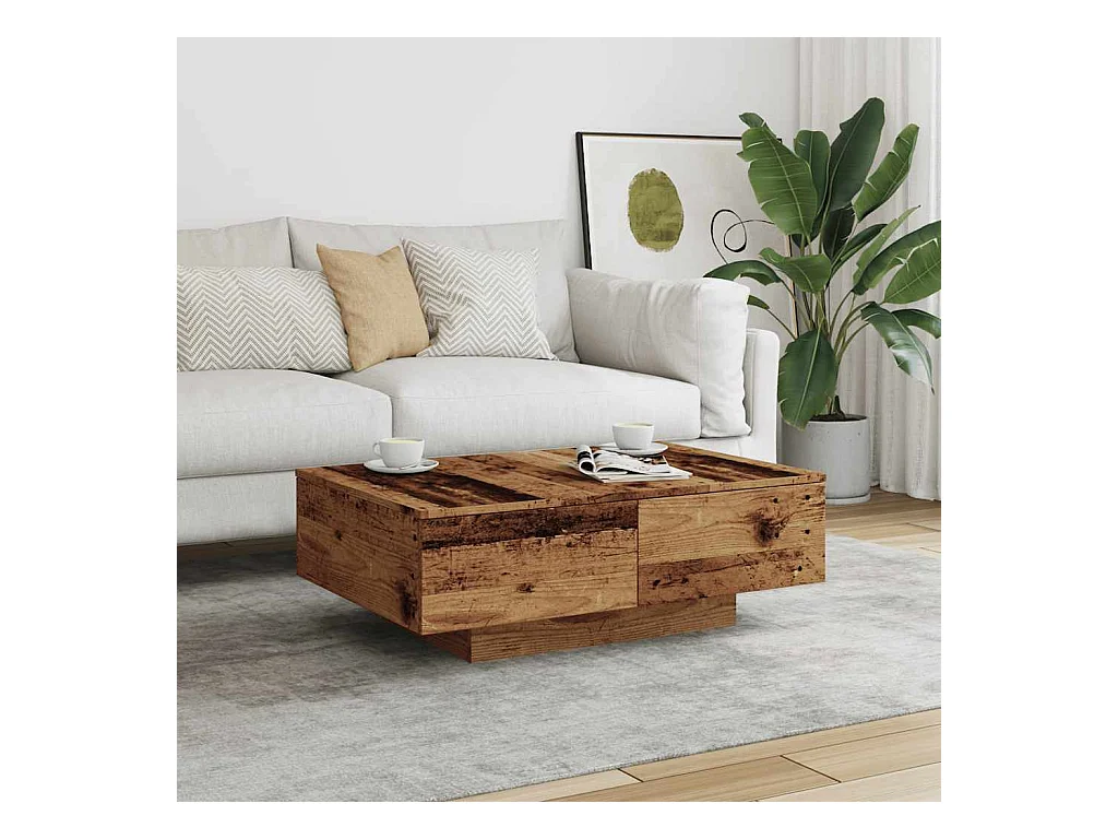 Table basse vieux bois 90x60x31 cm bois d'ingénierie