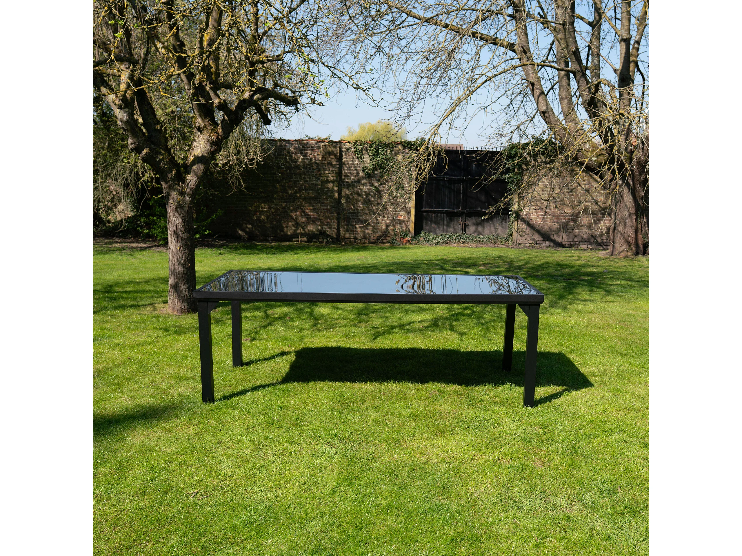 Table BlackEdition 8 places structure en aluminium noire et verre trempé opaque