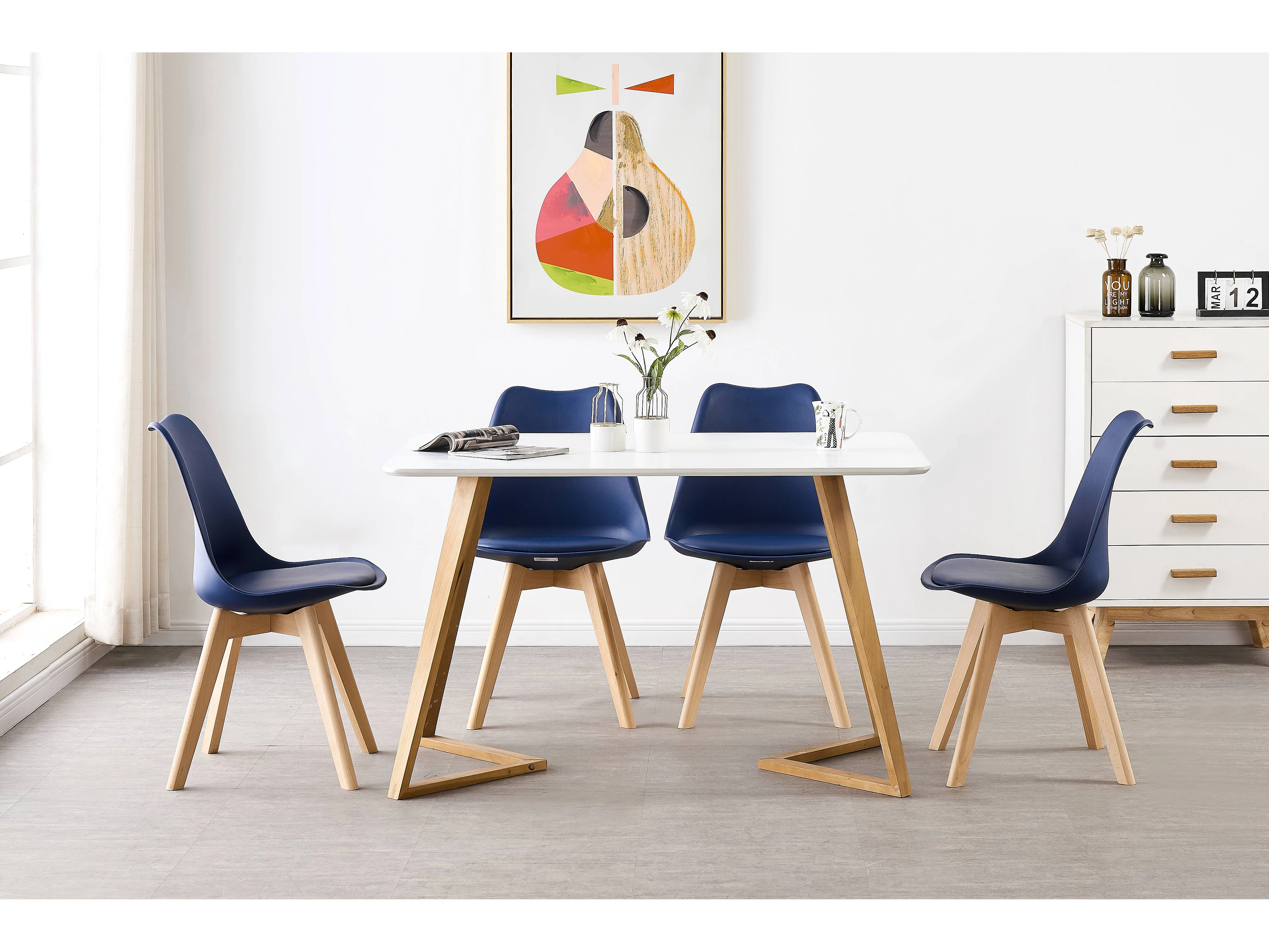 LORENZO DALLAS - Ensemble Table à Manger Blanche + 4 Chaises Scandinaves Bleues - Style Moderne