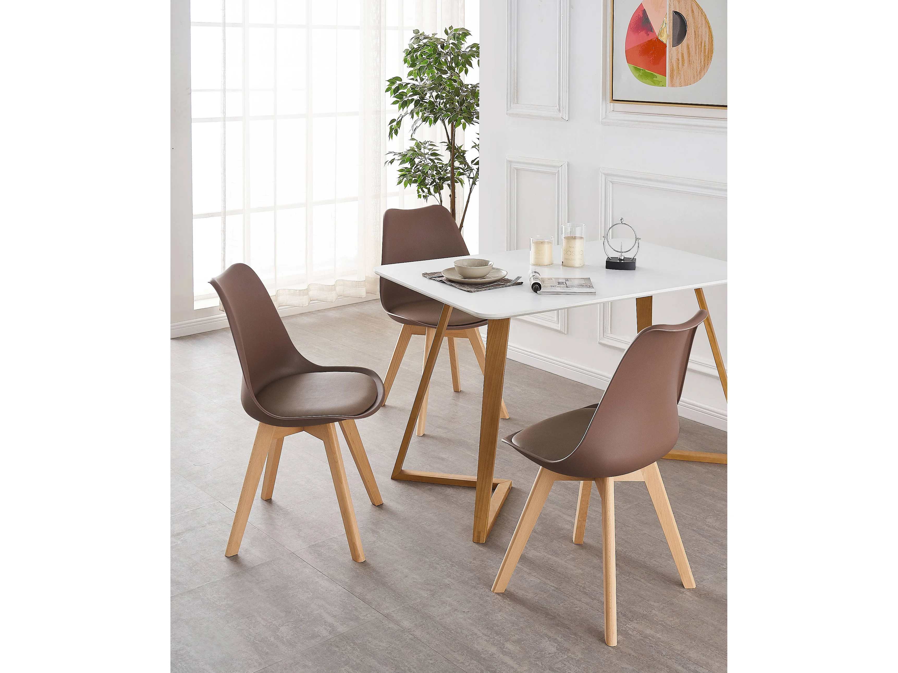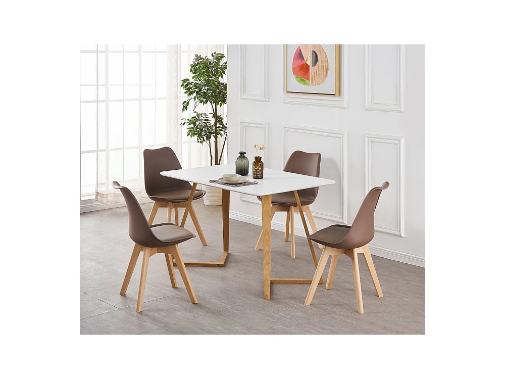 LORENZO DALLAS - Ensemble Table à Manger Blanche + 4 Chaises Scandinaves Marron - Style Moderne