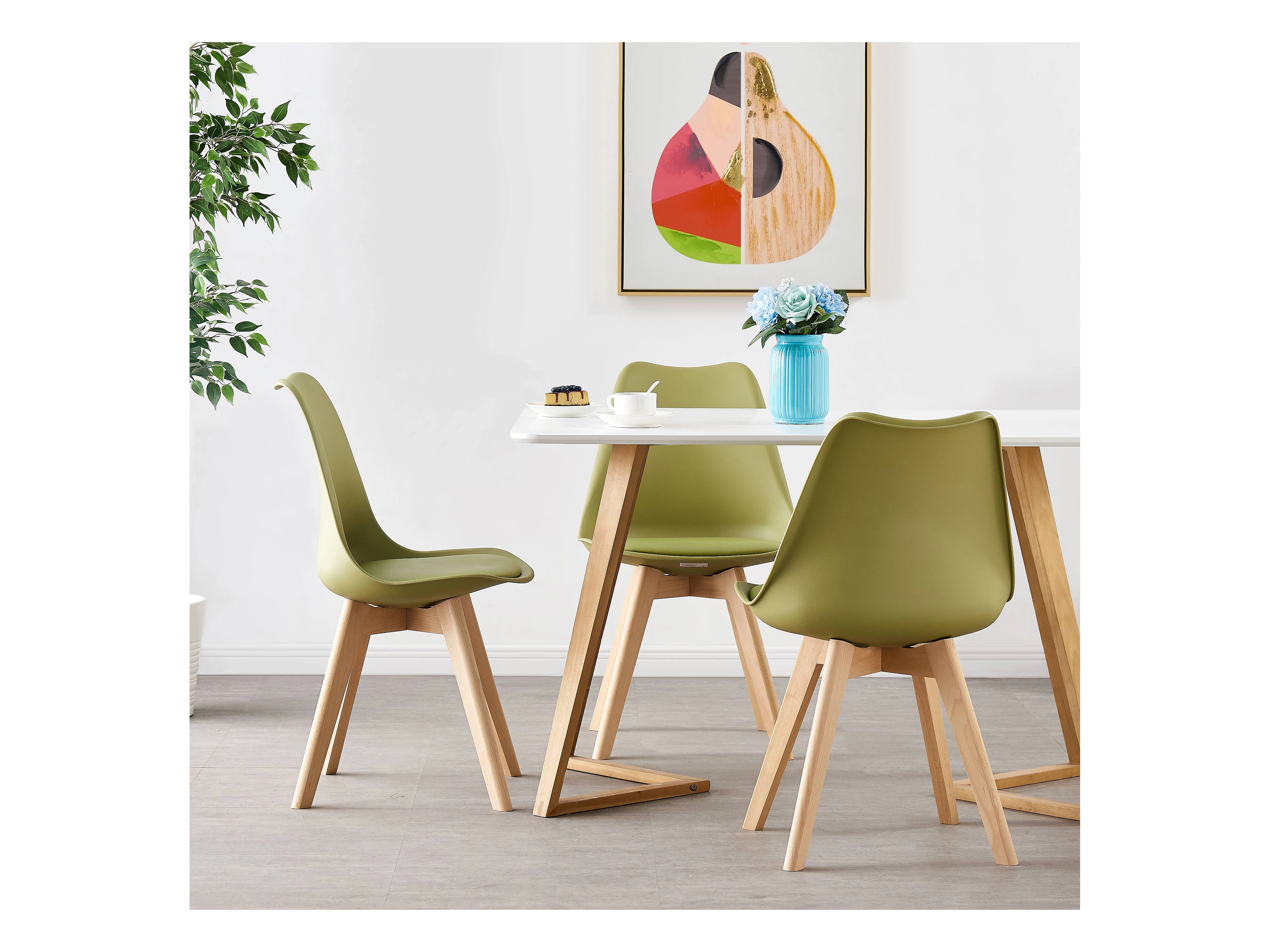 LORENZO DALLAS - Ensemble Table à Manger Blanche + 4 Chaises Scandinaves Vertes - Style Moderne