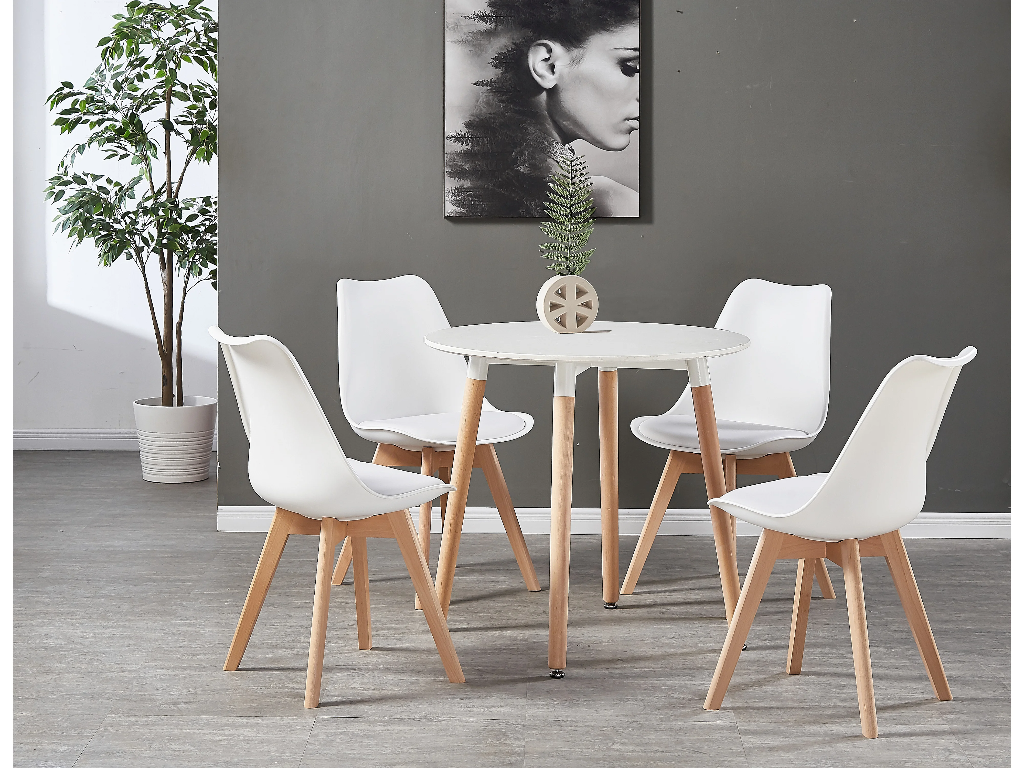 LORENZO HALO - Ensemble Salle à Manger - Table Blanche Ronde + 4 Chaises Scandinaves Blanches