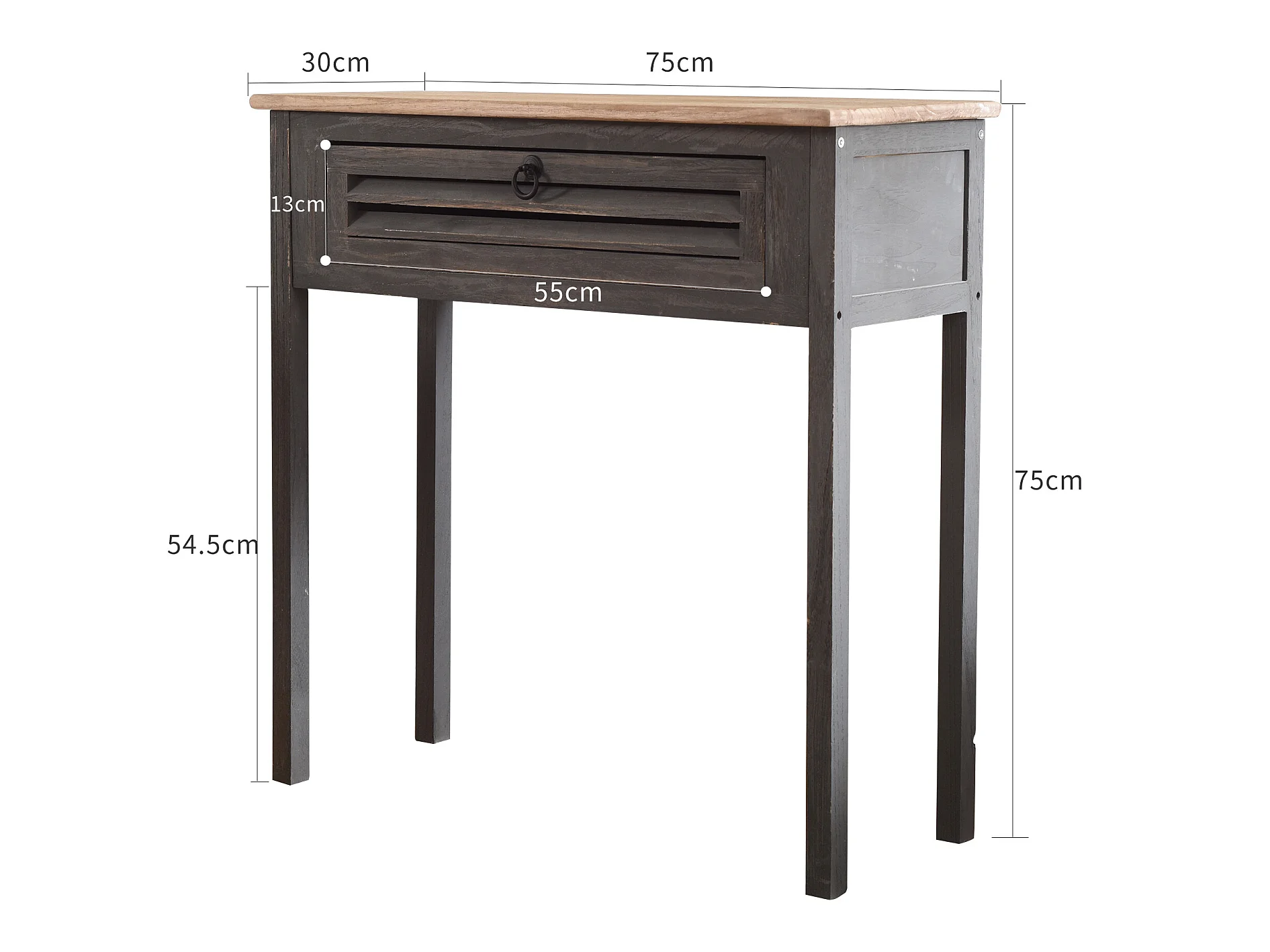 Table Bureau Console 1 Tiroir Bois Gris Shabby 75x75x30,5