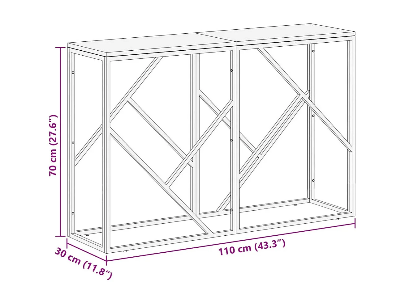 Table console doré 70x30x70 cm acier inoxydable et verre