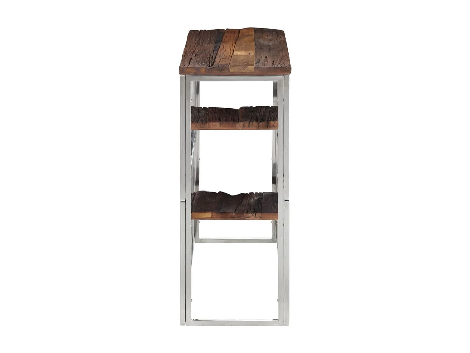 Table console argenté acier inoxydable/bois massif récupération FR77805