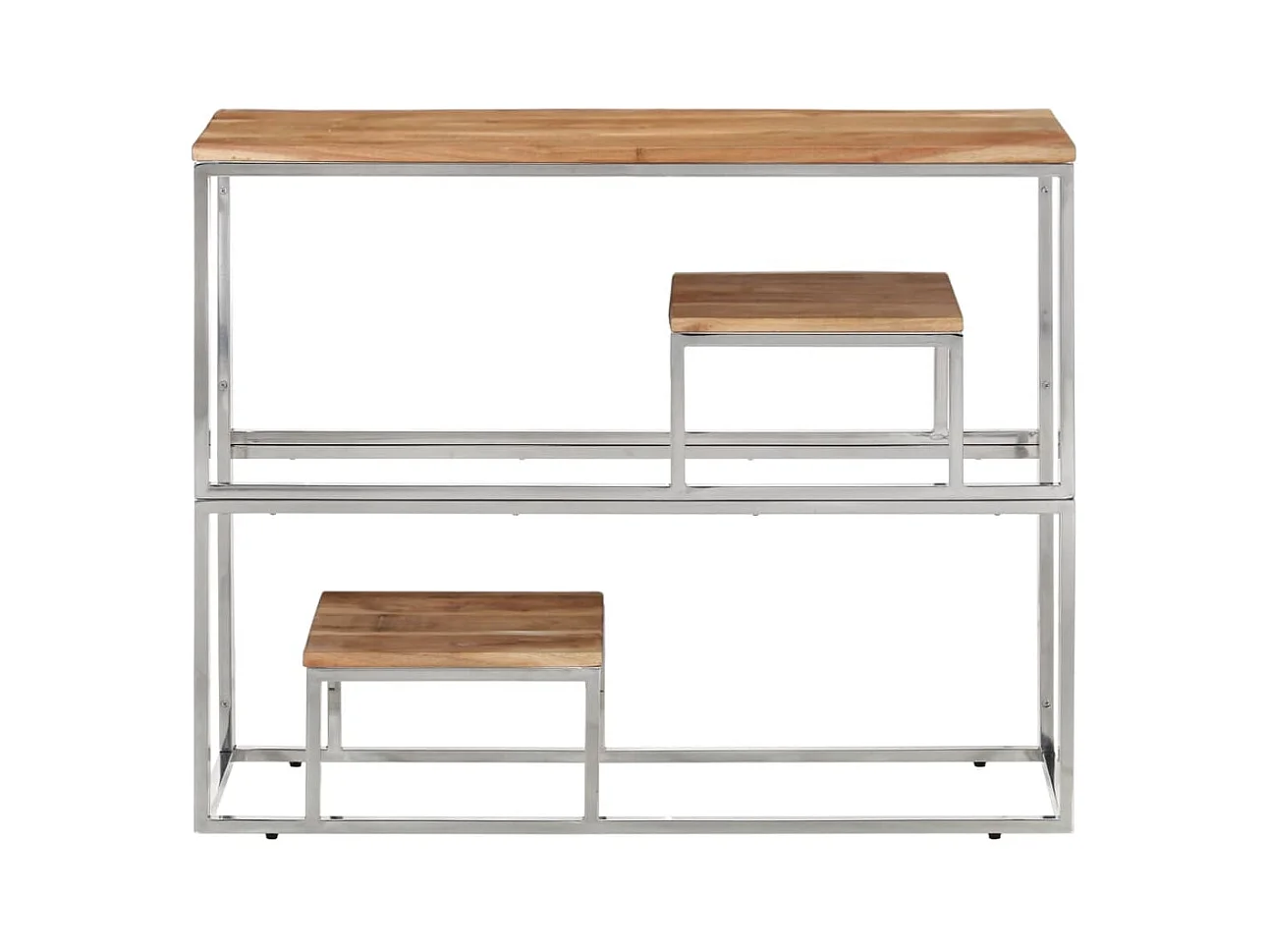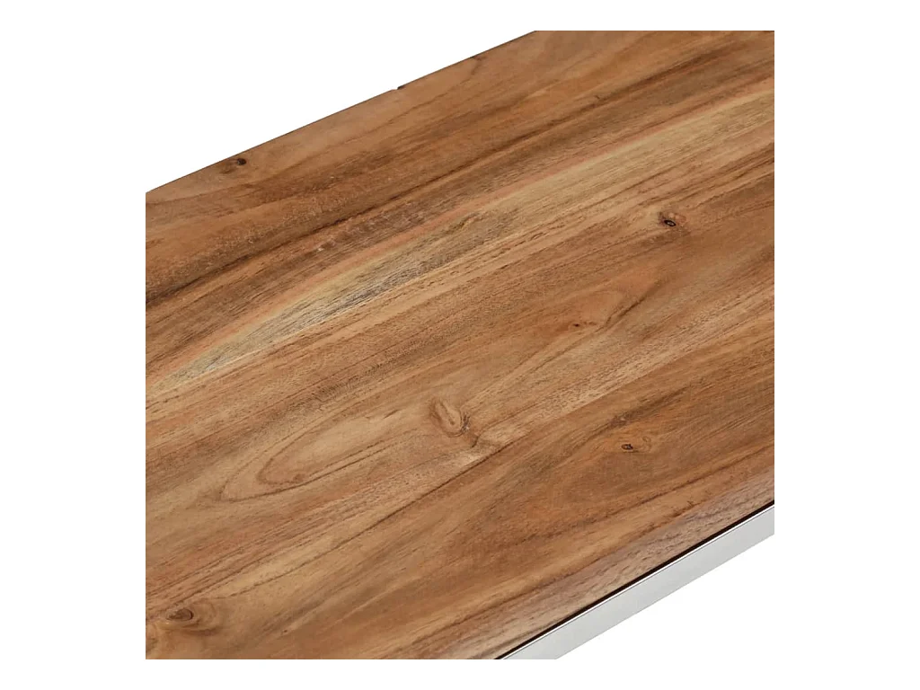 Table console argenté acier inoxydable et bois massif d'acacia