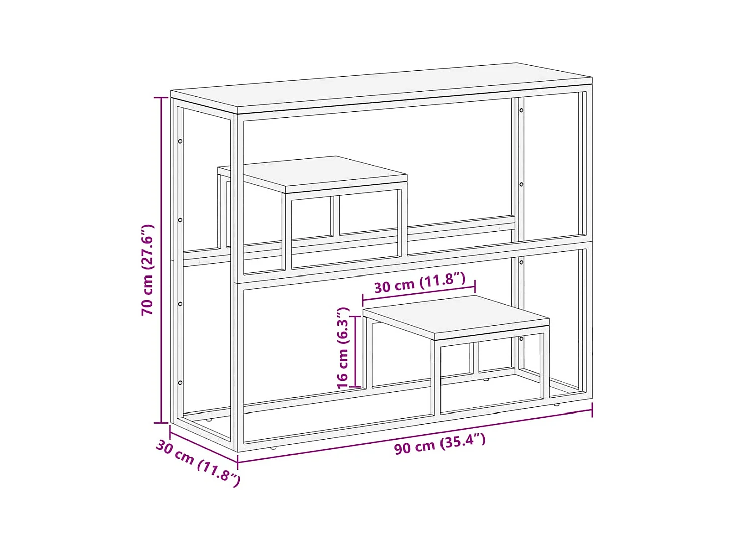 Table console 70x30x70 cm acier inoxydable et verre