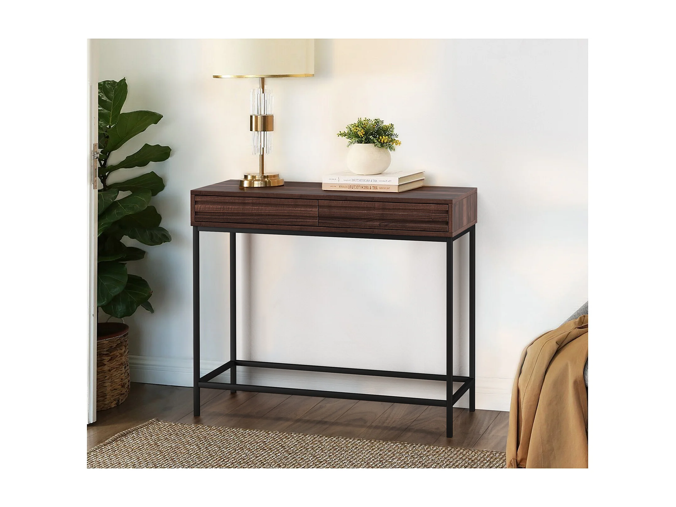 Celine | Table console avec 2 tiroirs en panneaux de particules noyer