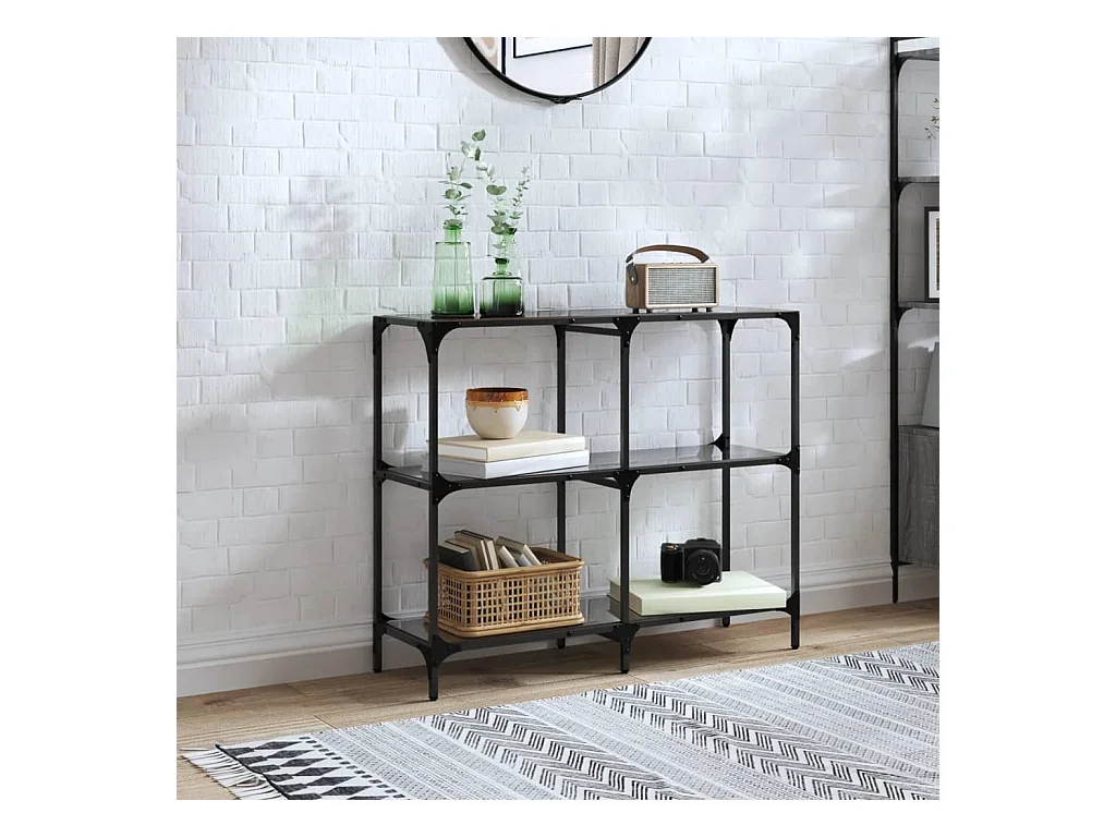 Table console avec dessus en verre noir 98x35x81 cm acier FR558571
