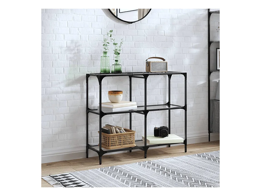 Table console avec dessus en verre transparent 80x35x81cm acier