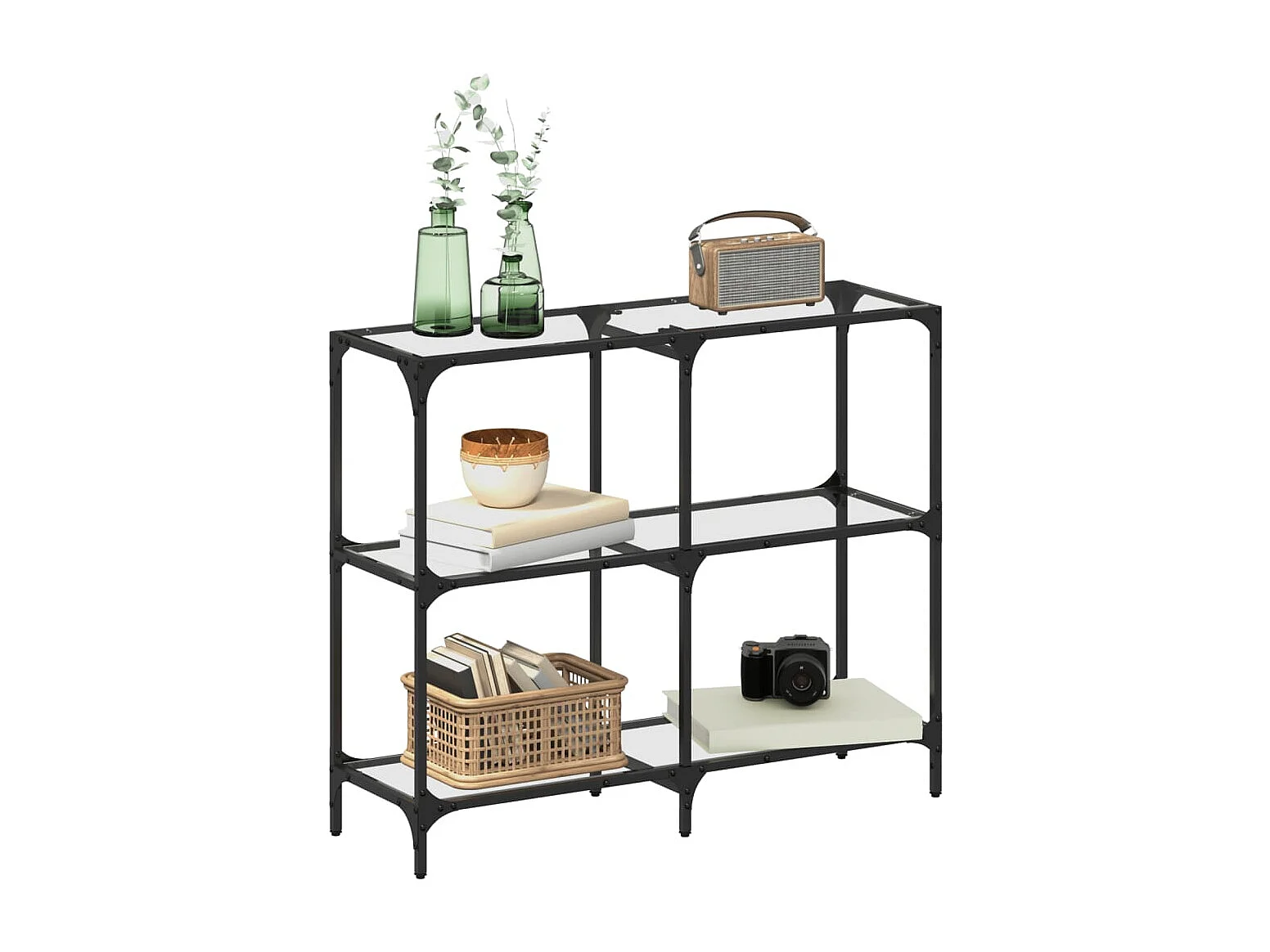 Table console avec dessus en verre transparent 98x30x81cm acier FR792354