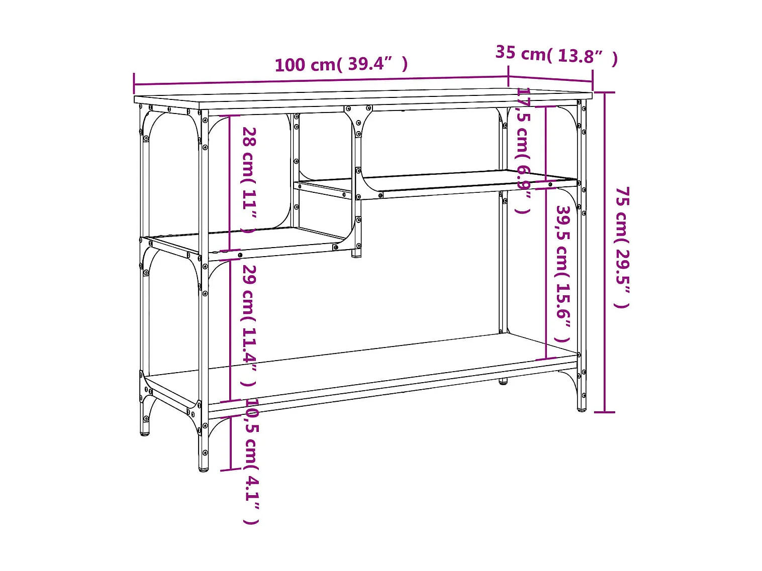 Table console avec étagères chêne sonoma 100x35x75 cm