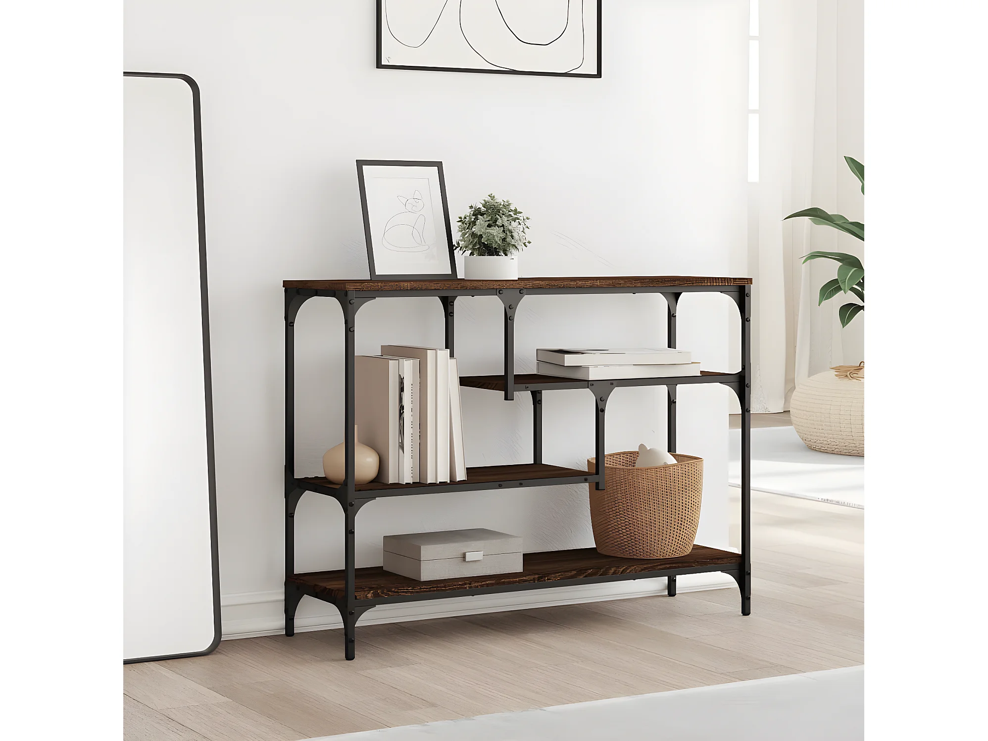 Table console avec étagères chêne fumé 100x30x80 cm GHR79032