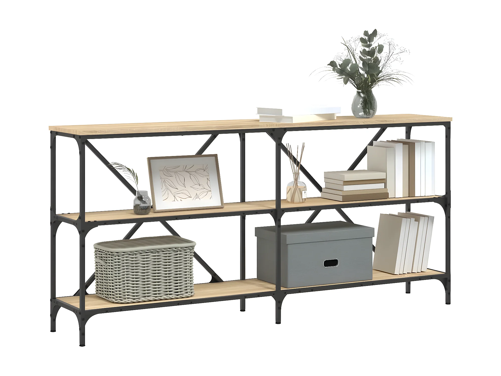 Table console chêne sonoma 160x30x75cm bois d'ingénierie et fer GHR12671