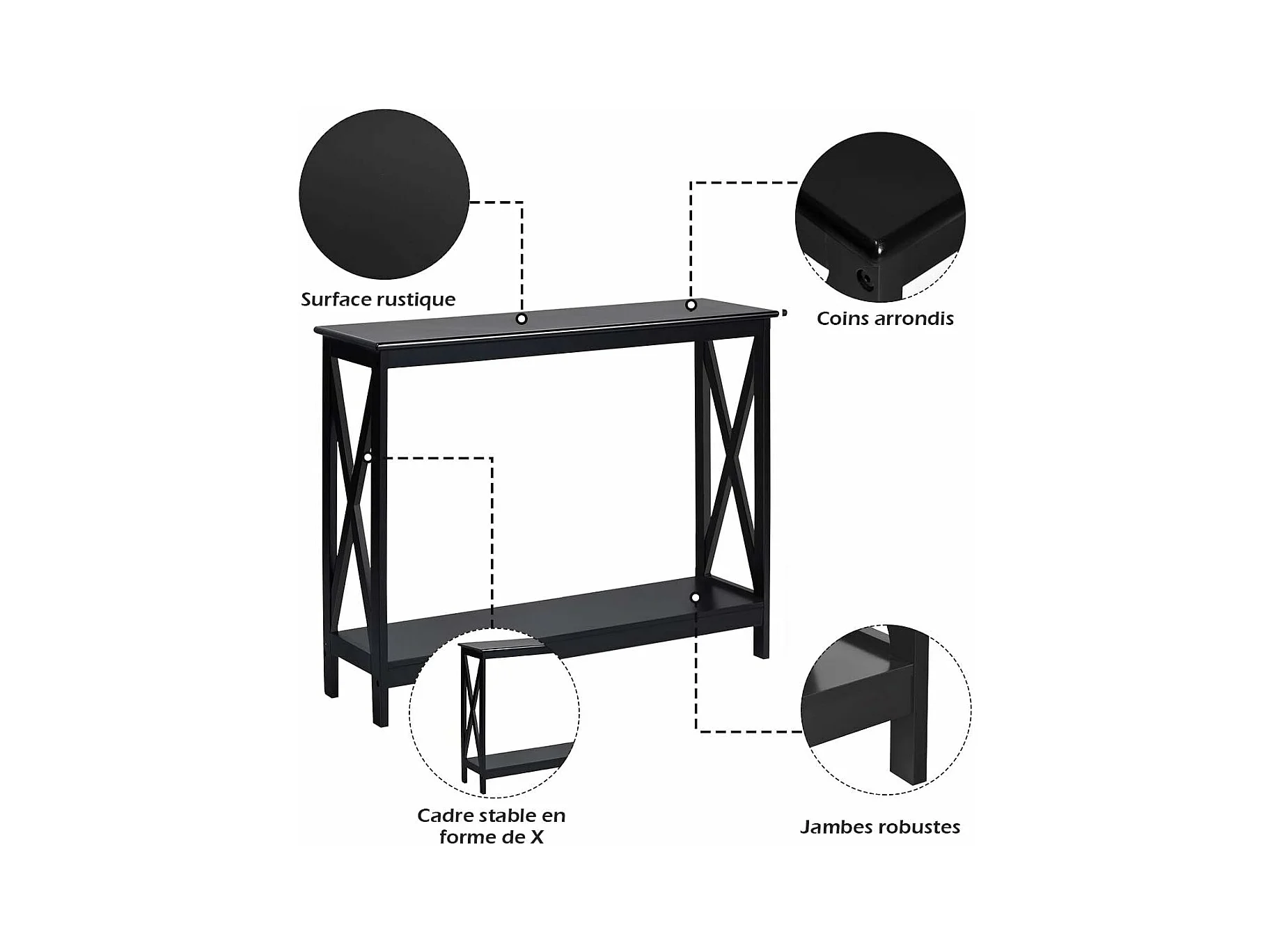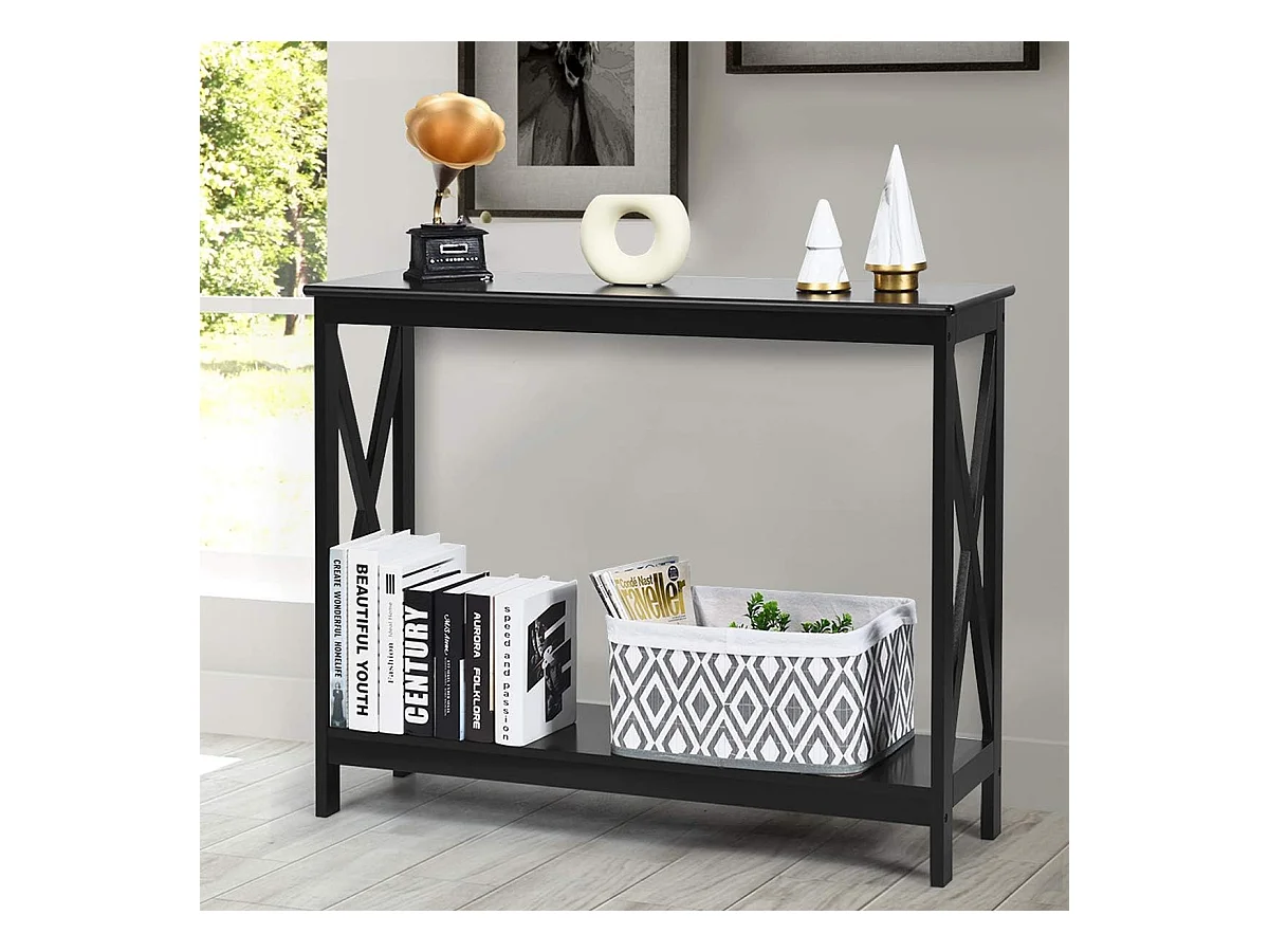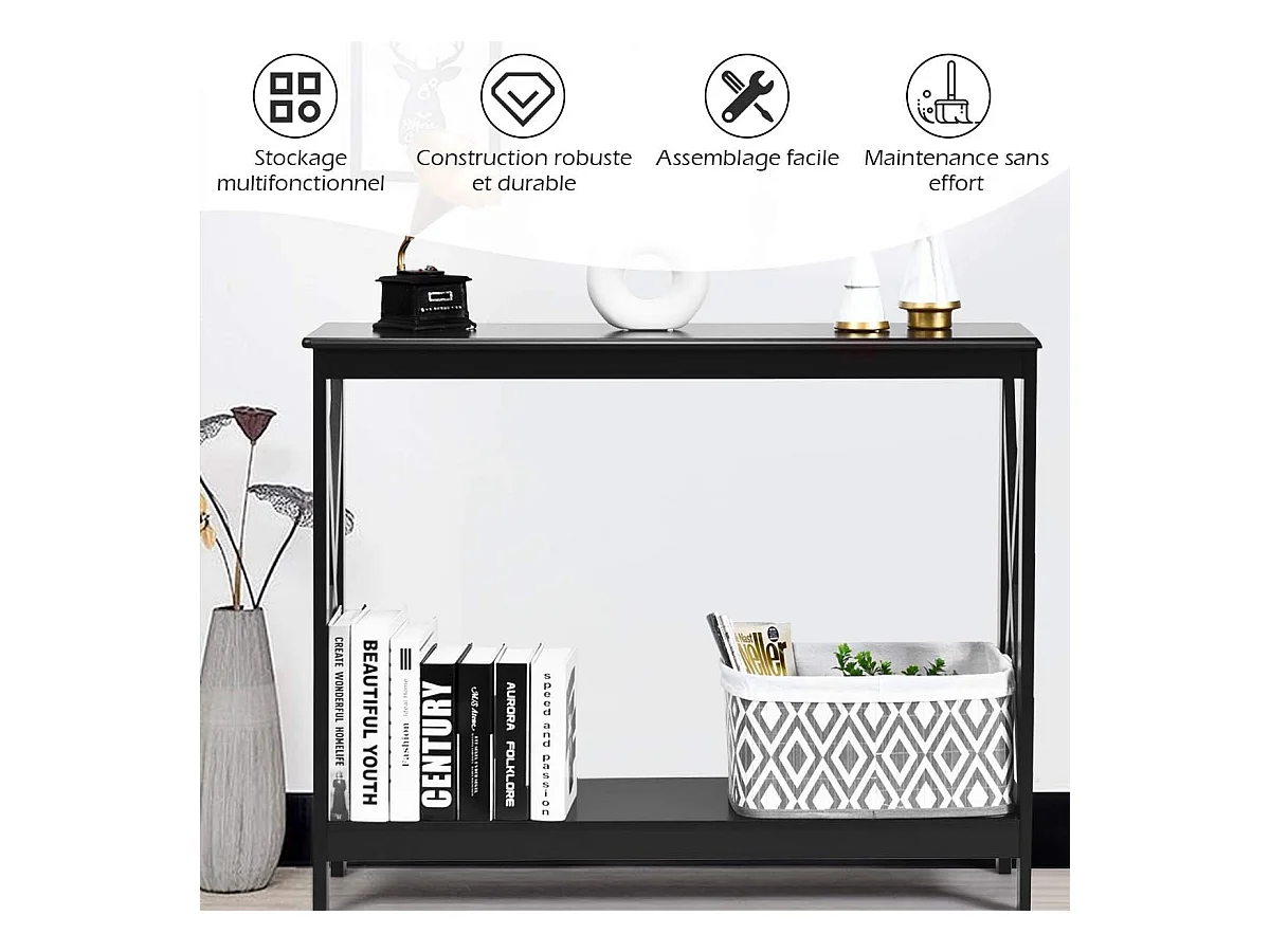 Table Console d'Appoint Industrielle à 2 Niveaux, Meuble pour Entrée, Couloir, Salon, 100 x 30 x 80 cm (Noir)
