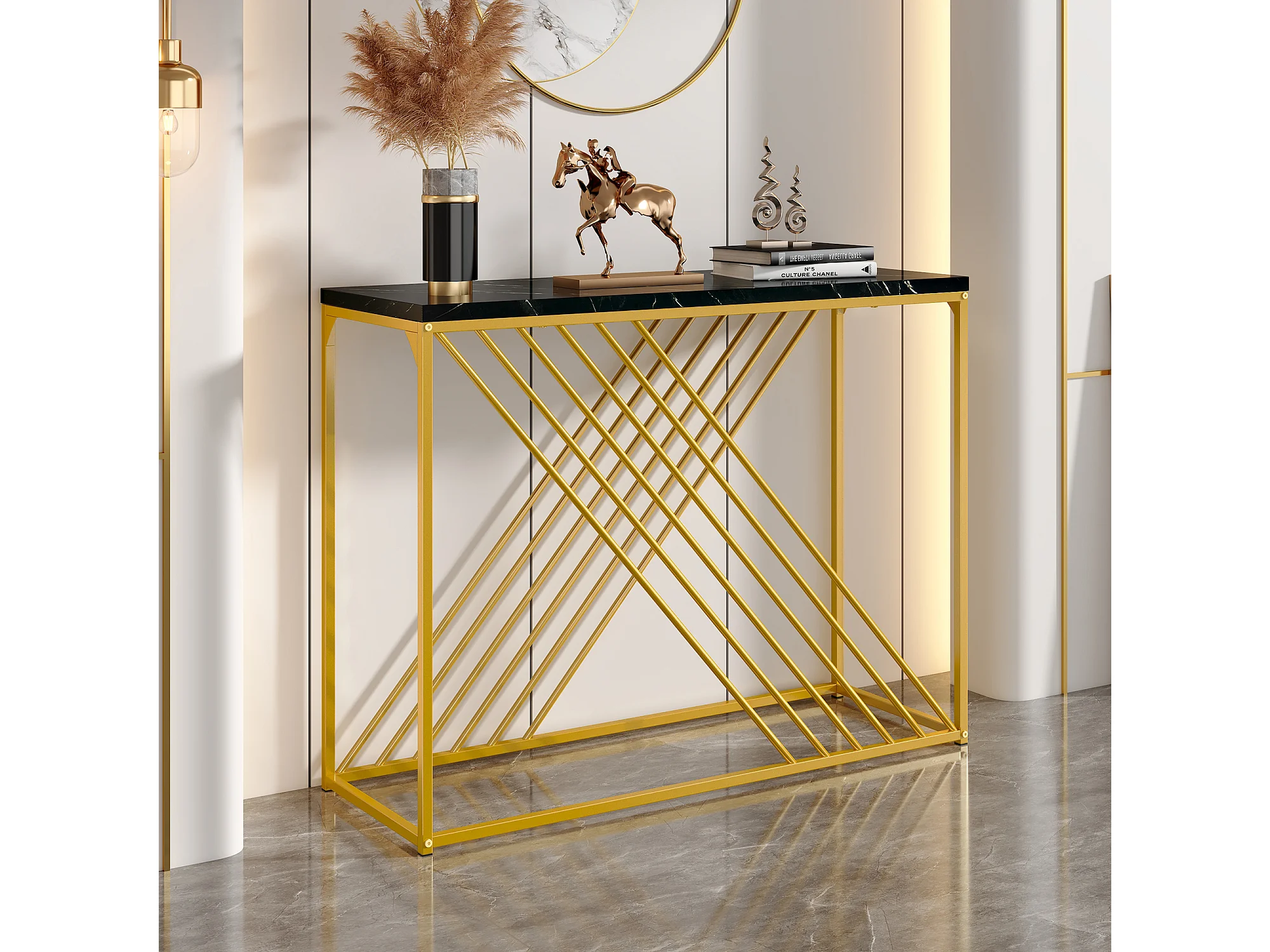 Console Design en Marbre "Star" 120cm Blanc & Or
