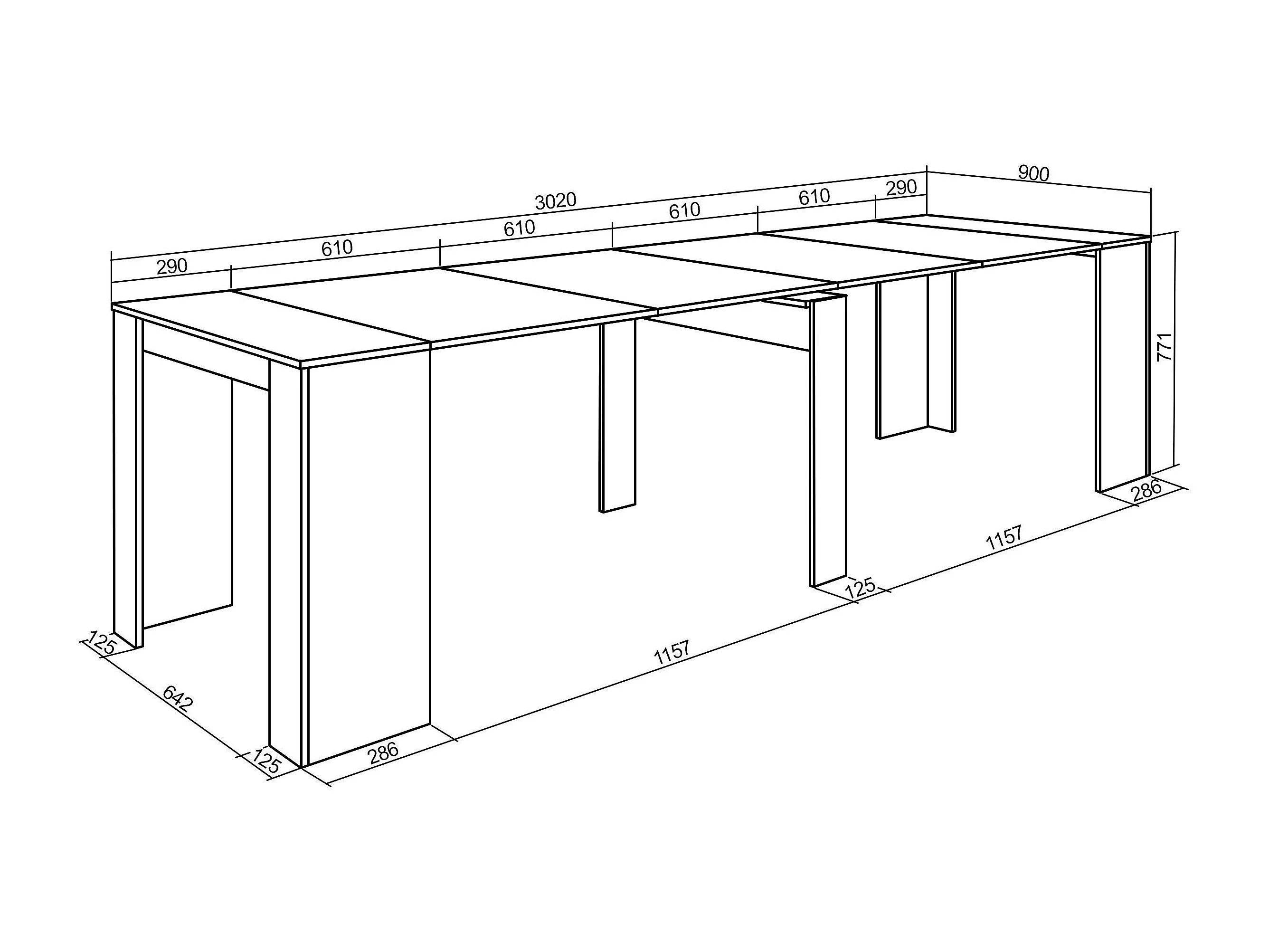 Table console extensible, 302x90x77cm, Pour 14 personnes, Table à Manger, Chêne et noir