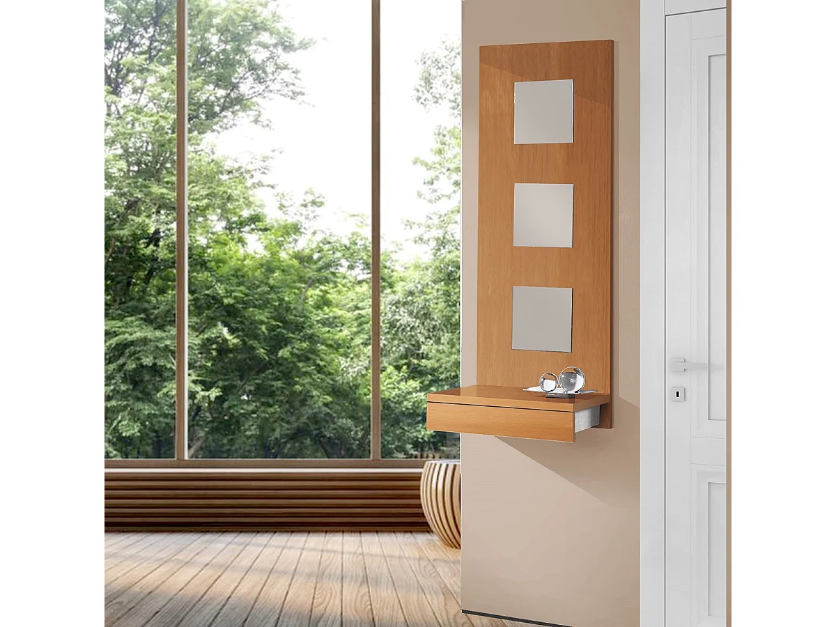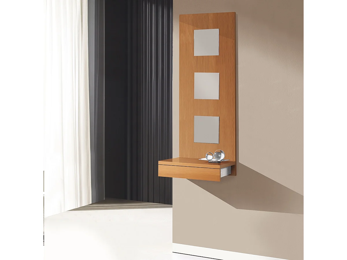 Table console, meuble console avec 1 tiroir coloris cerisier - L. 45 x P. 28 x H. 120 cm