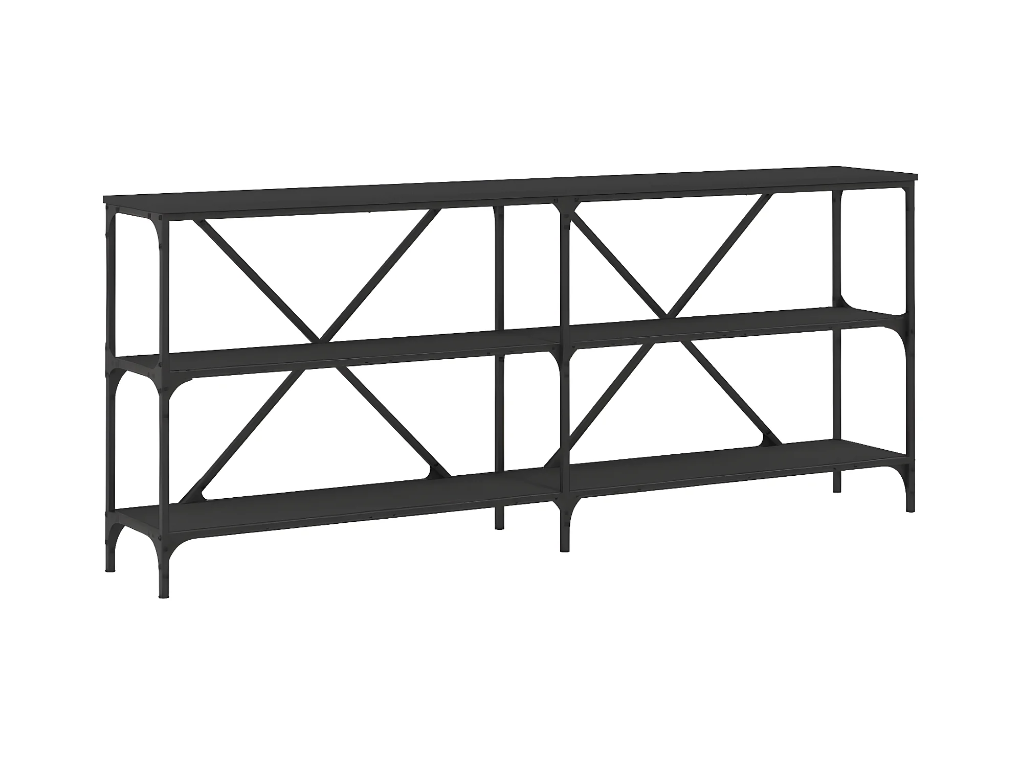 Table console noir 200x30x75 cm bois d'ingénierie et fer GHR55315