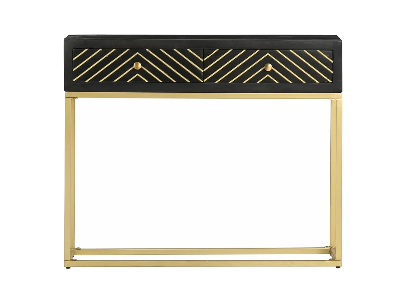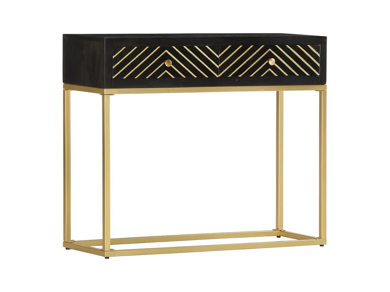 Table console Noir et doré 90x30x75 cm Bois de manguier massif FR57517