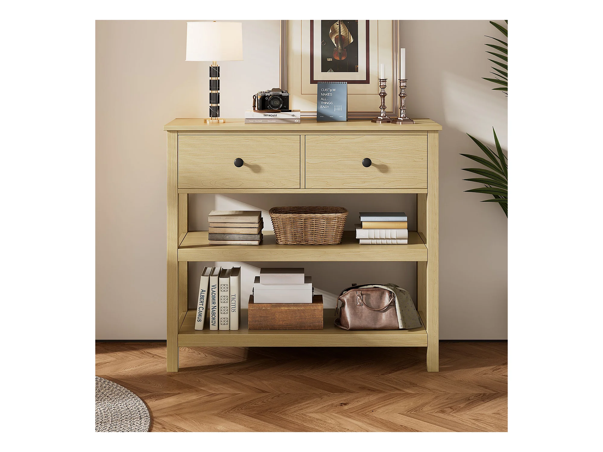 Table console moderne - avec 2 tiroirs - avec des étagères ouvertes - Naturel