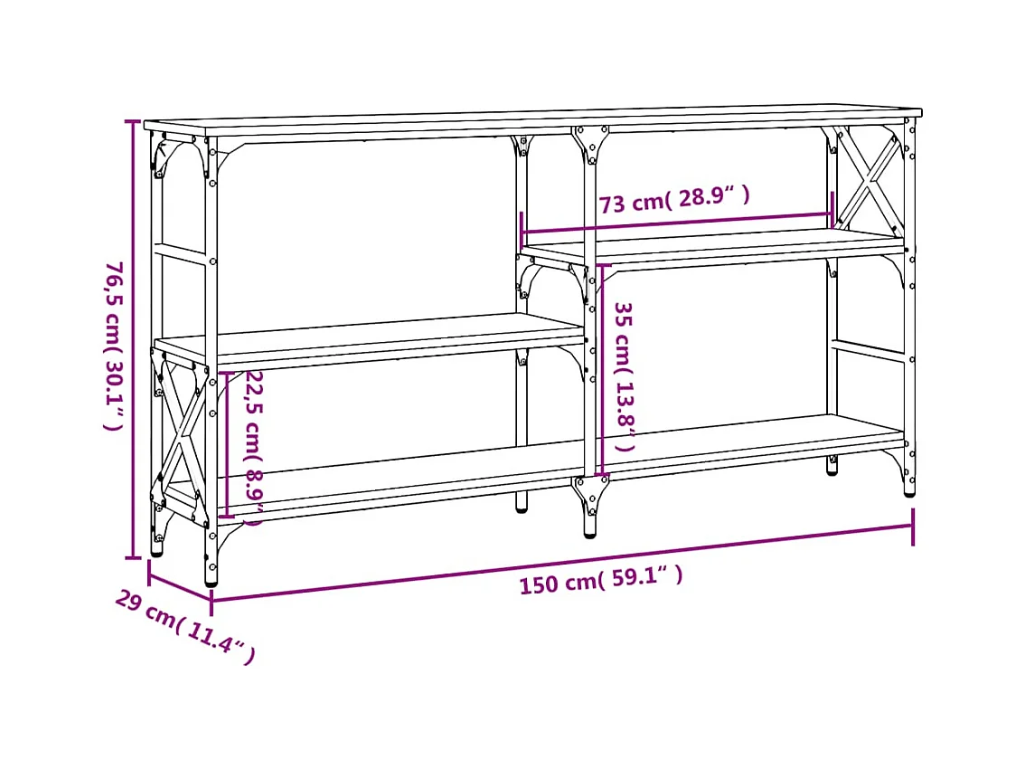 Table console sonoma gris 150x29x76,5 bois d'ingénierie