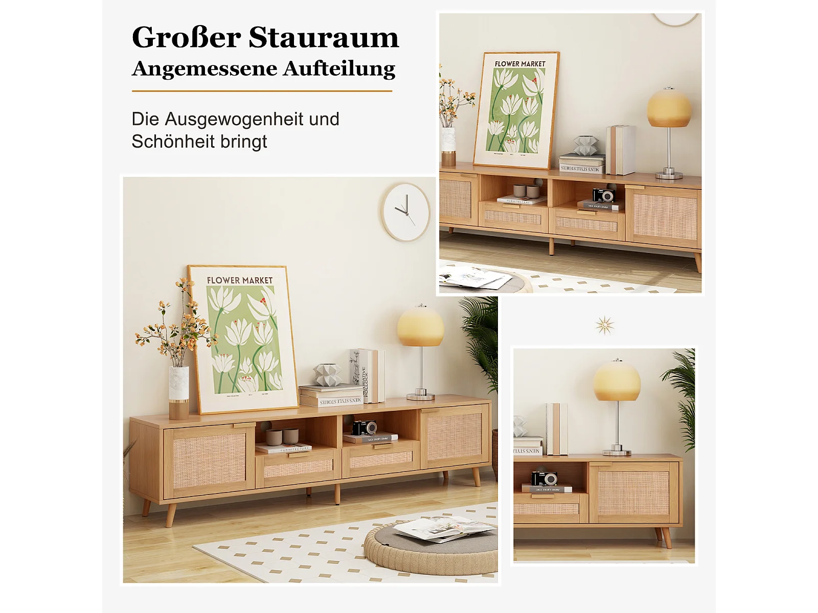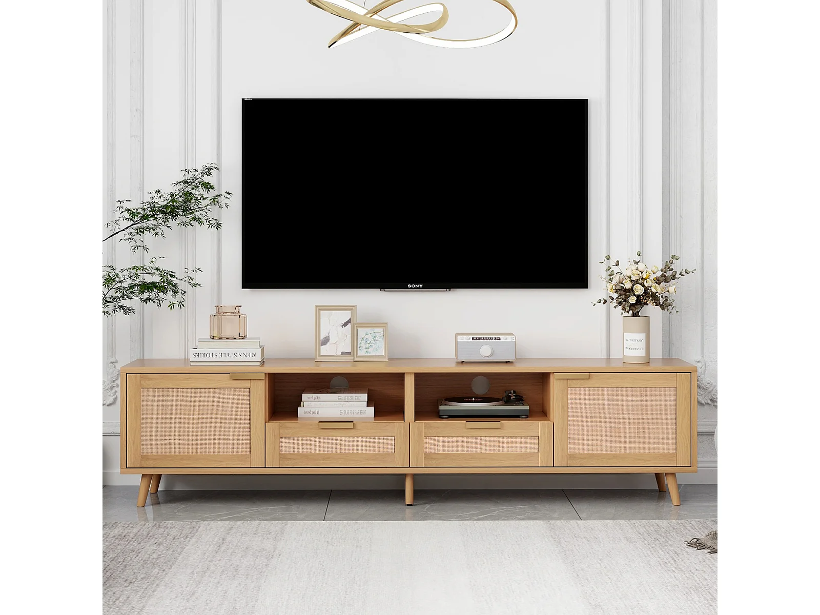 Table console TV, 200*37*49cm, meuble TV avec design en rotin véritable, meuble TV avec pieds en bois massif, table TV en rotin tressé