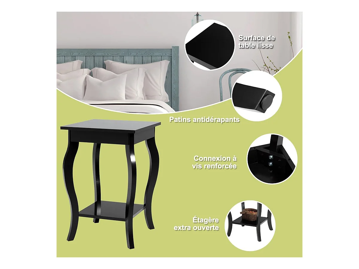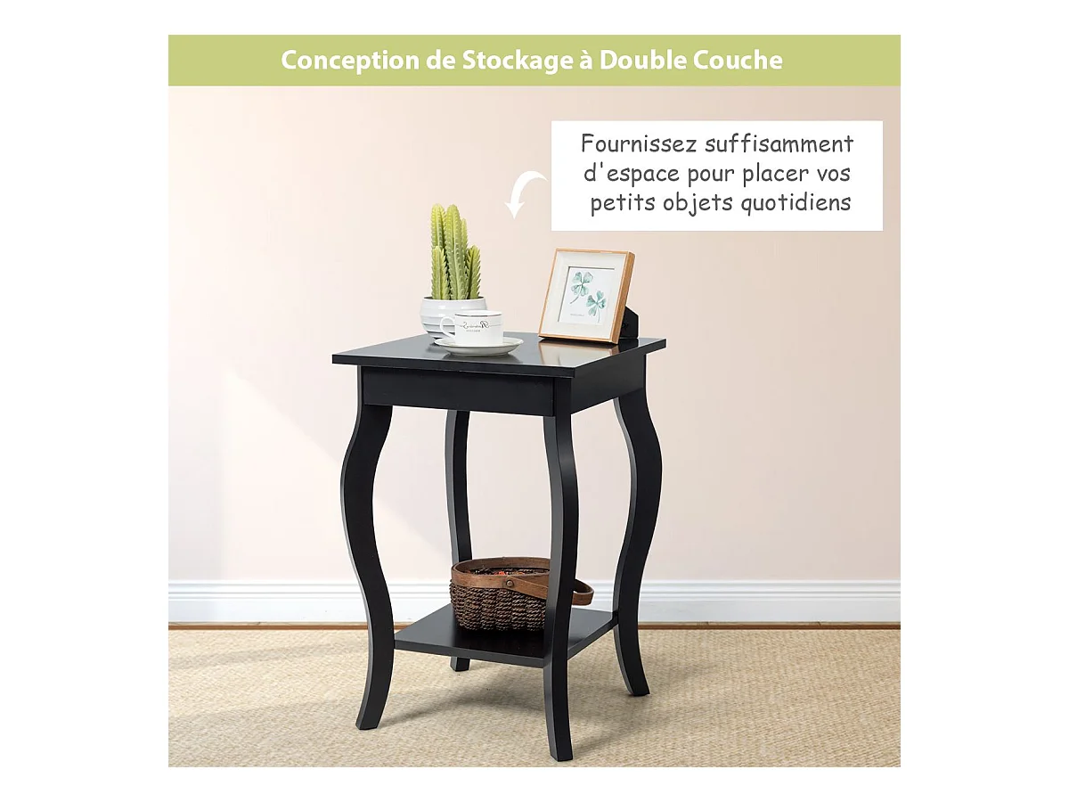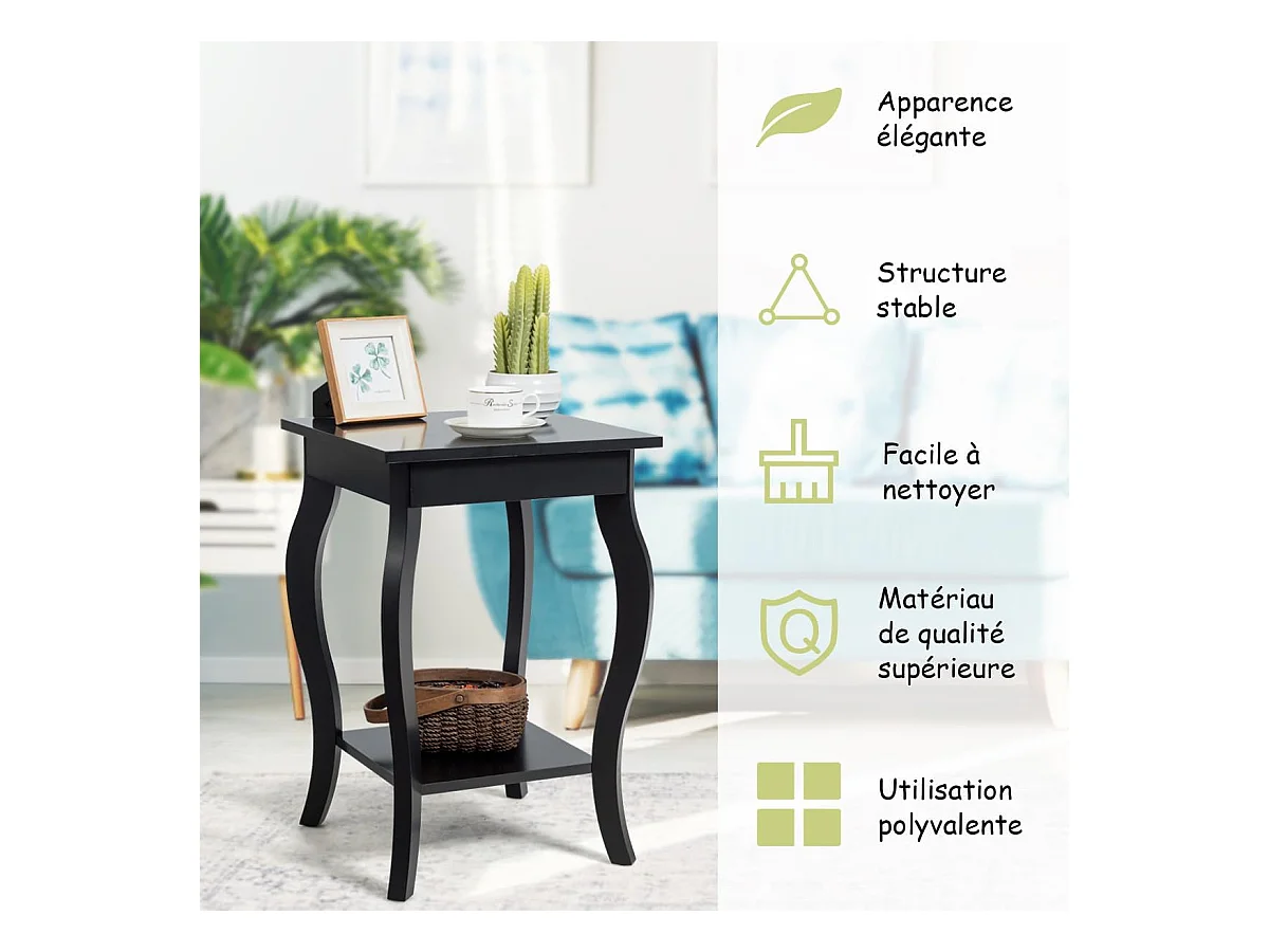 Table d'appoint, 2 niveaux, avec patins antidérapants, 40 x 40 x 60 cm, noir