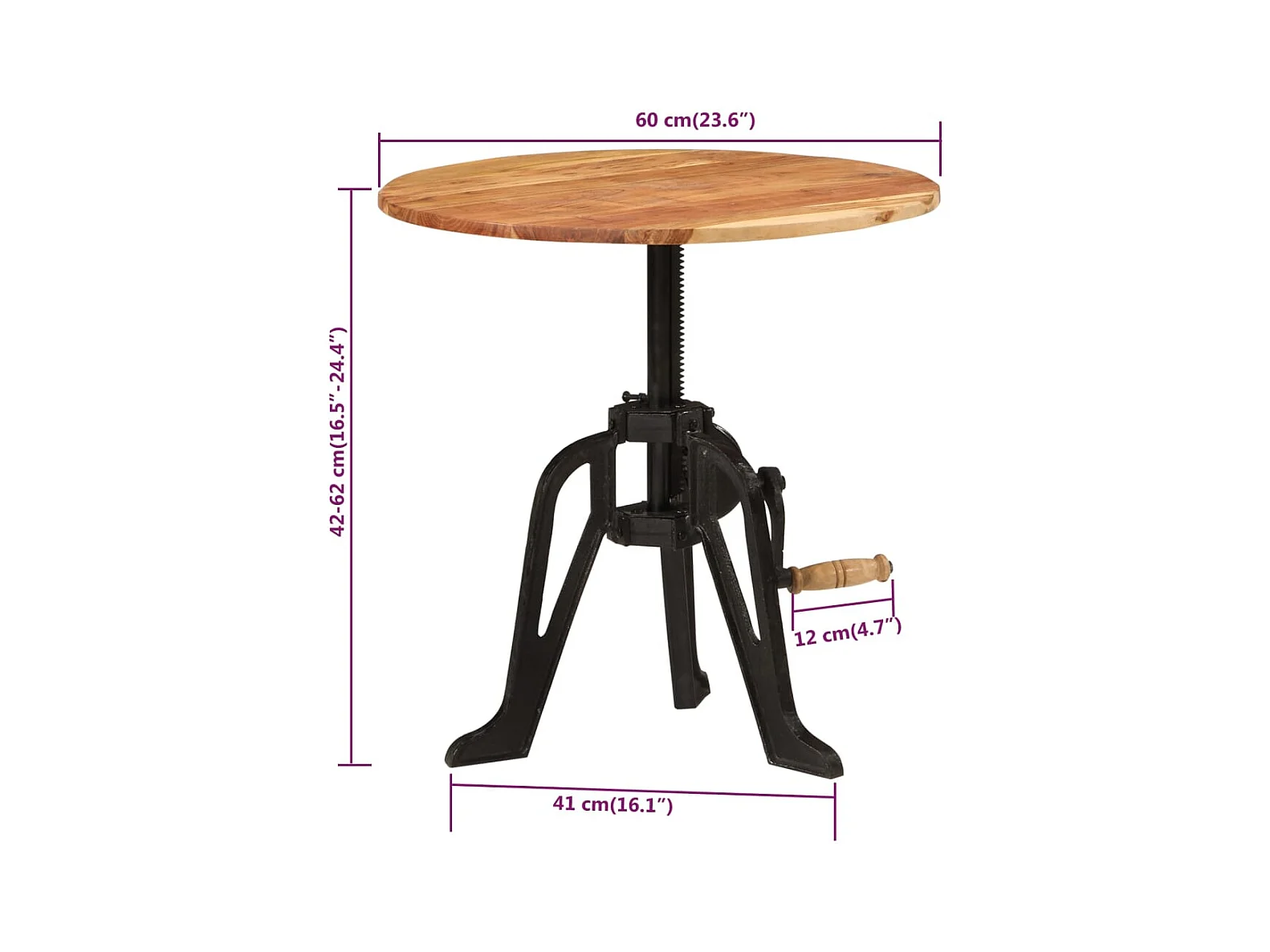 Table d'appoint 60x(42-62) cm Bois massif d'acacia et fonte