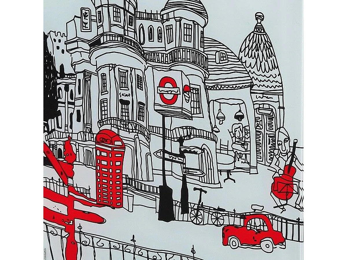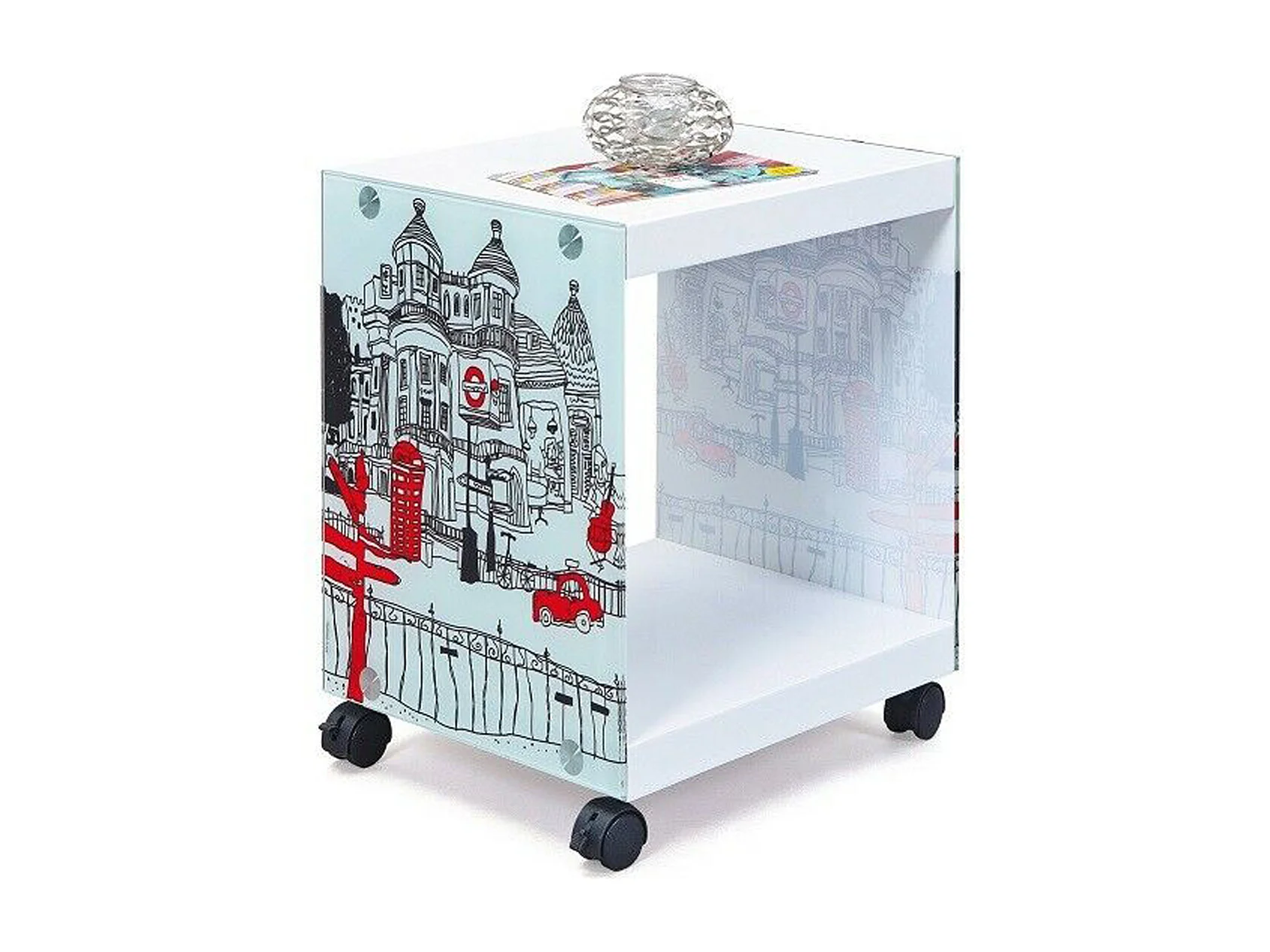 Table d'appoint avec panneau de verre et roues Drapeau Cube Londres