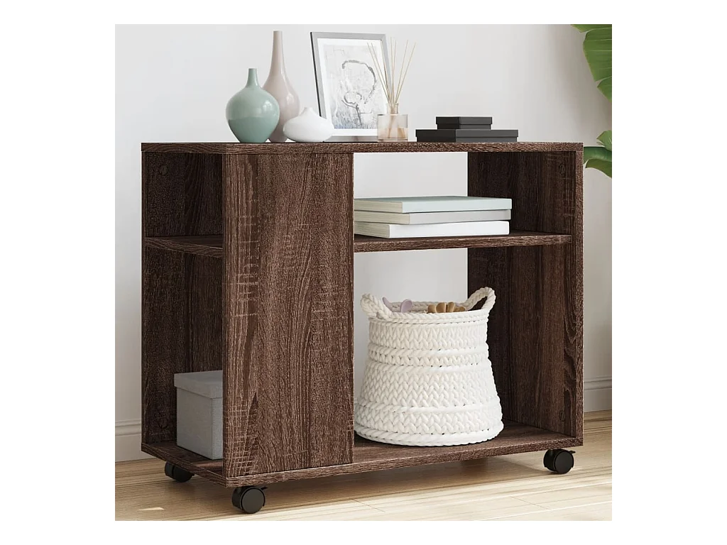 Table d'appoint avec roues chêne marron bois d'ingénierie