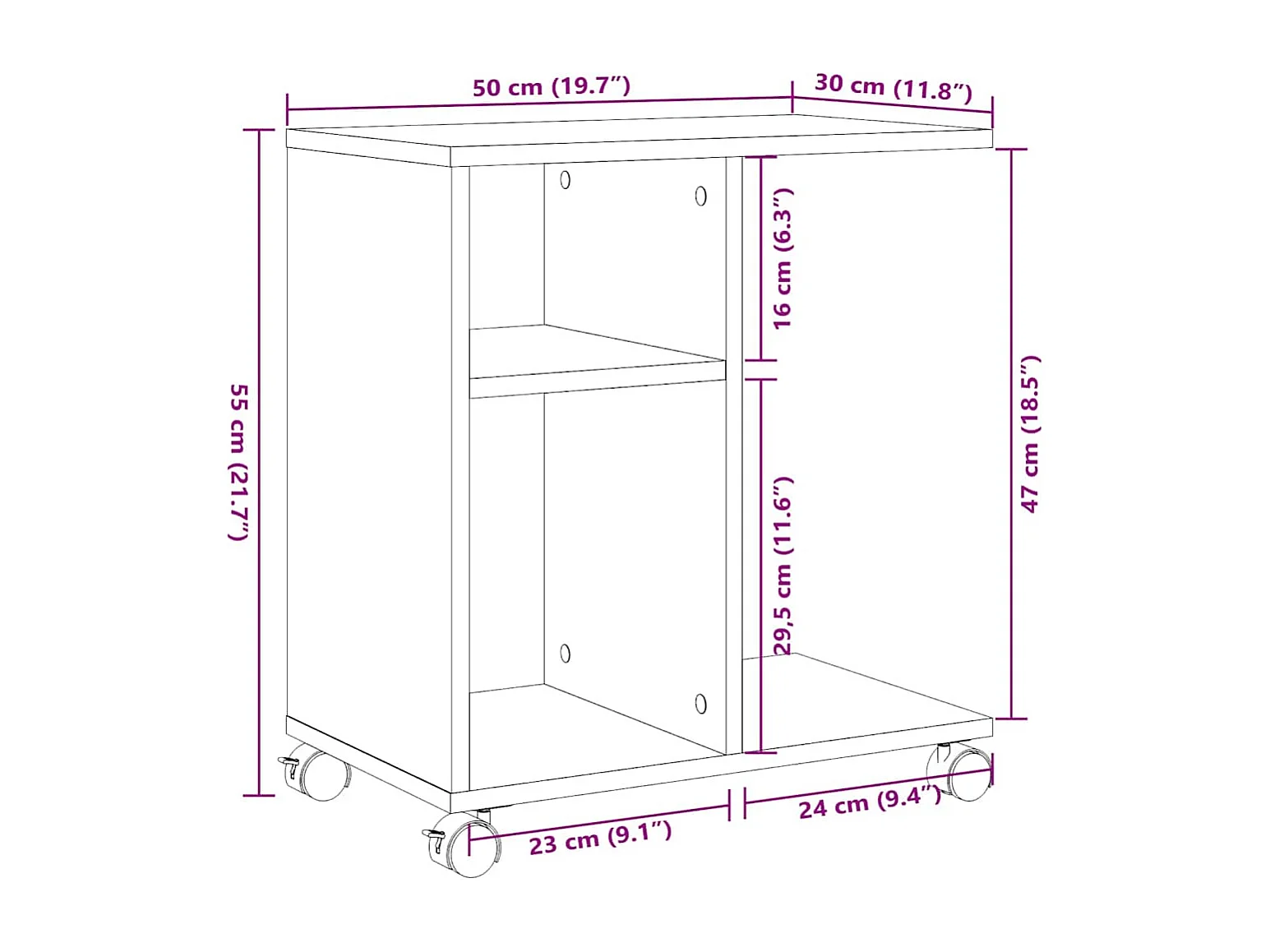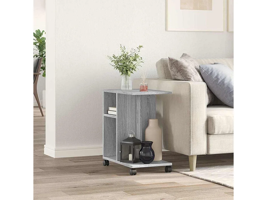 Table d'appoint avec roues sonoma gris bois d'ingénierie