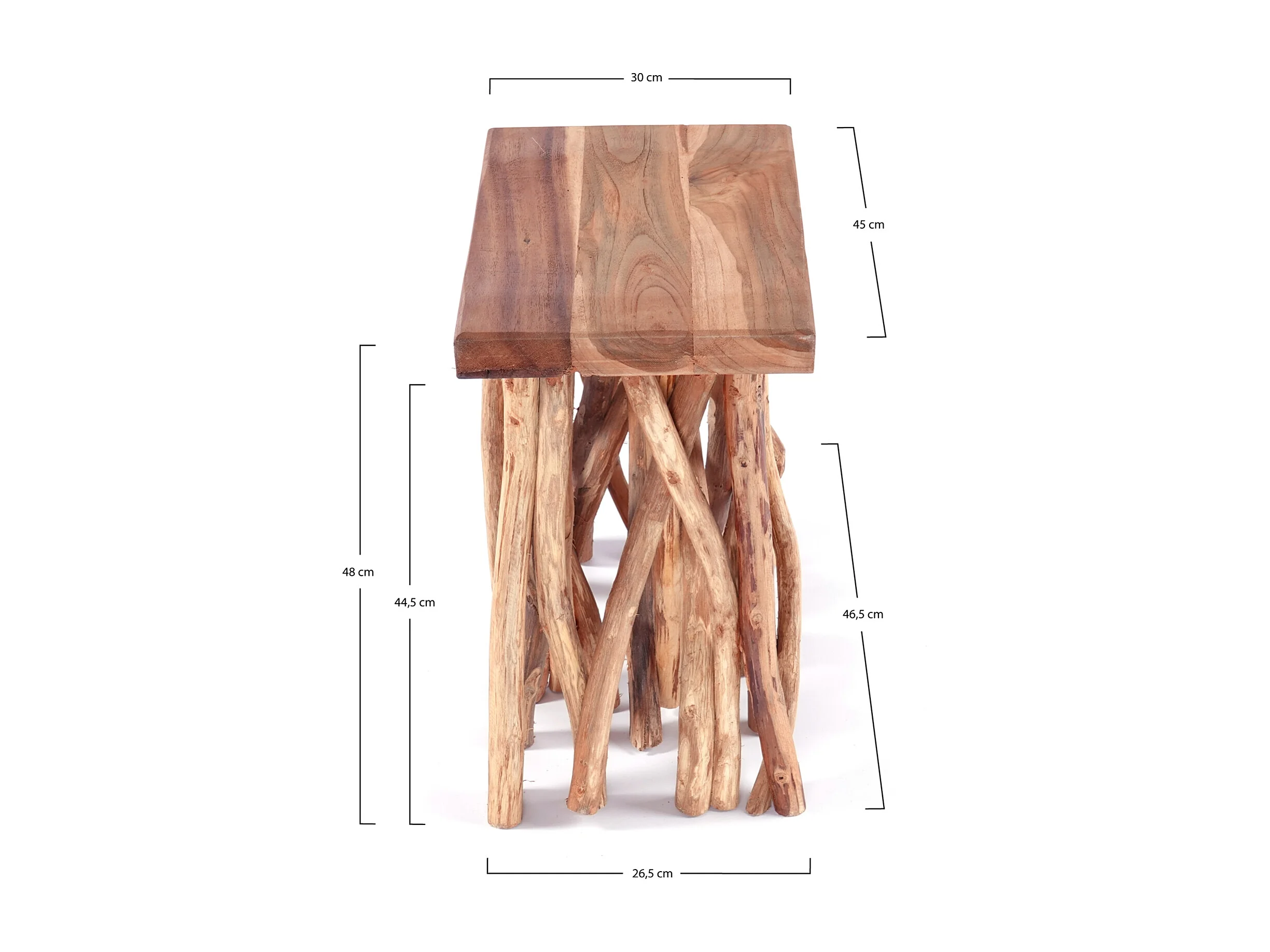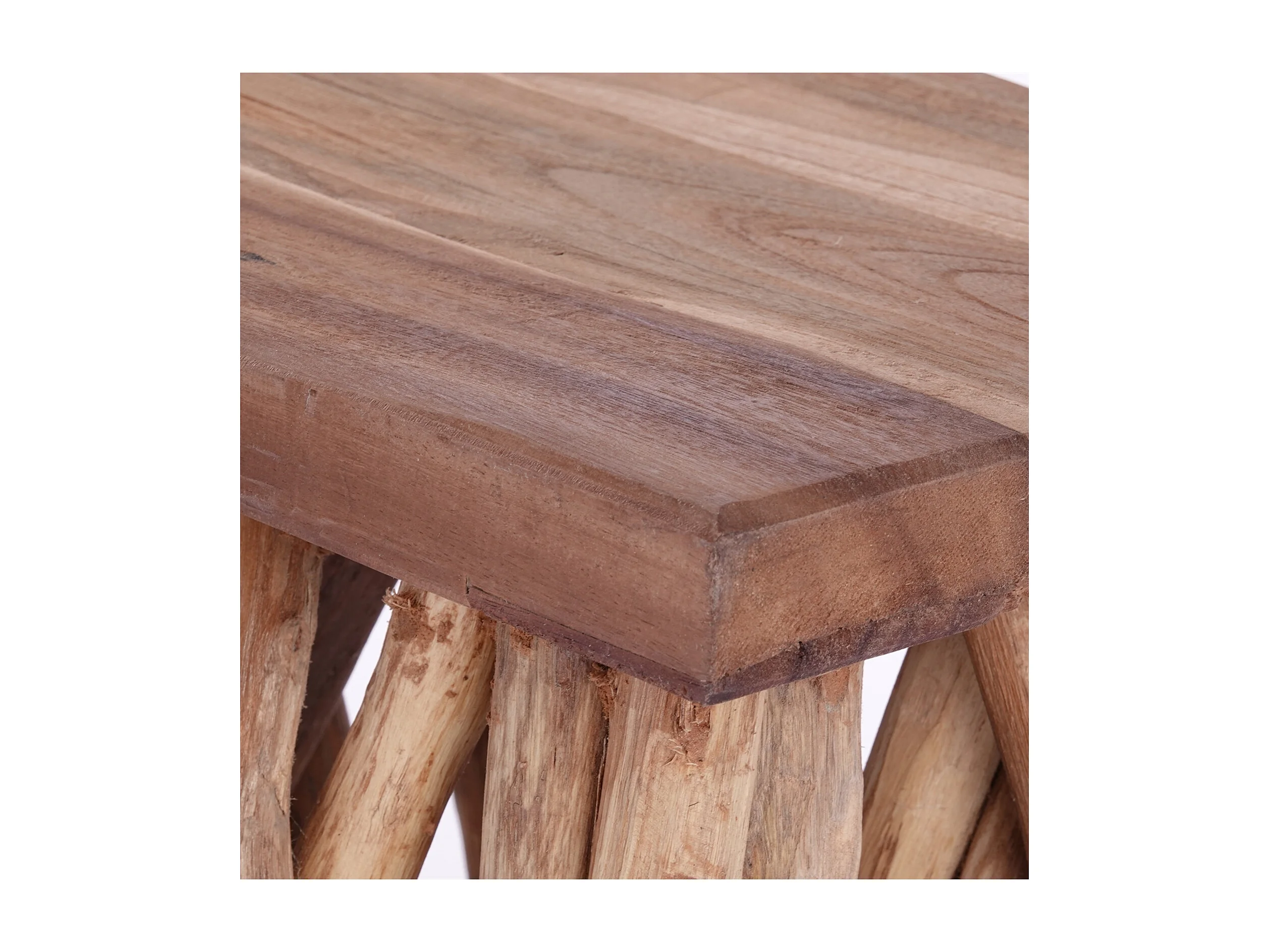 TABLE D'APPOINT Bois Teck en bois massif, socle en branches naturelles. couleurs naturelles