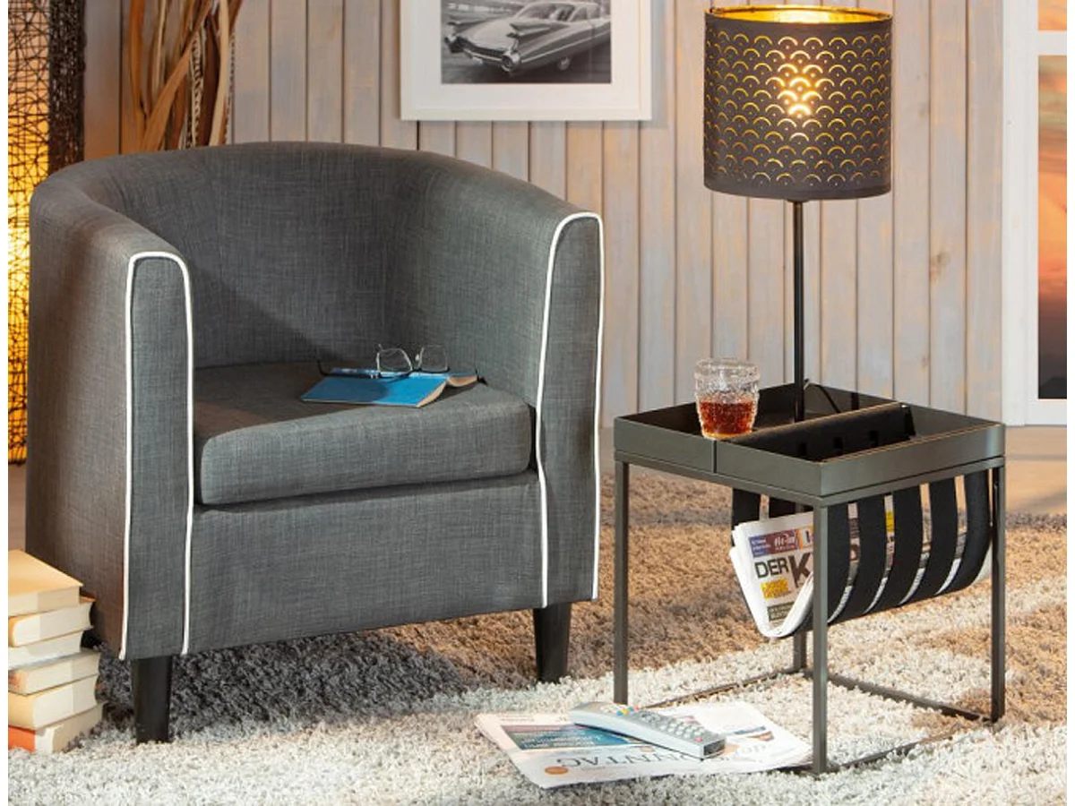 Table d'appoint carrée / porte-revue en métal coloris anthracite - L.35 x H.40 x P.35 cm